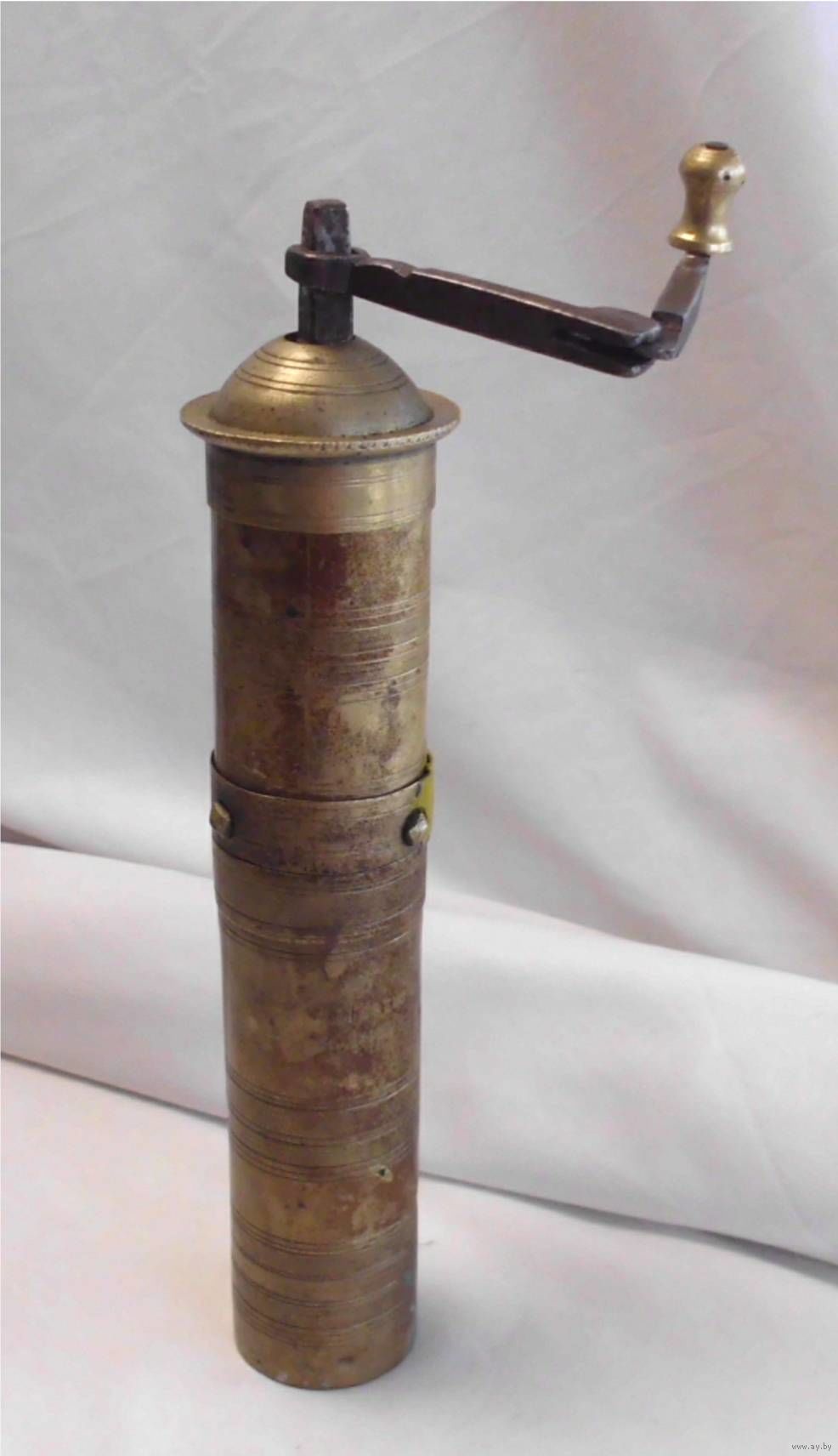 Корпус - латунь, жёрнов - сталь.