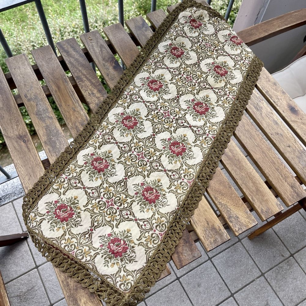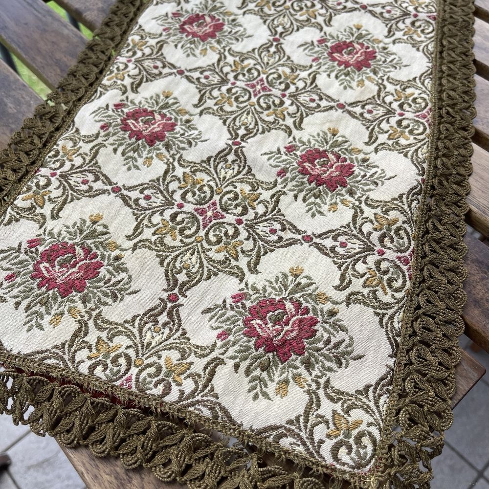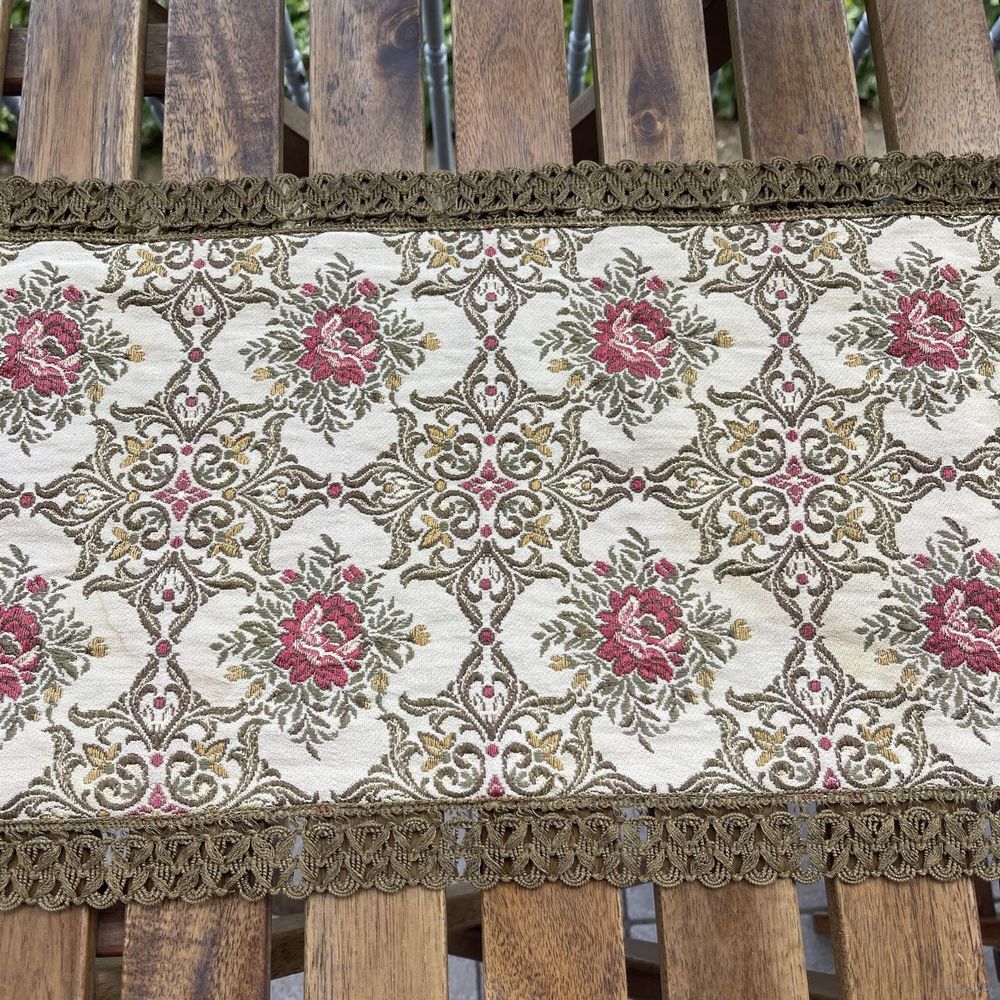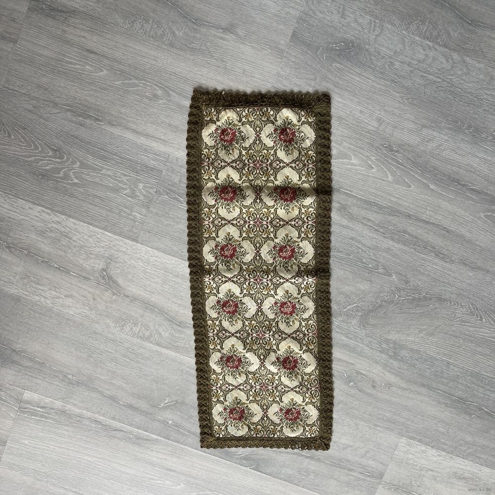Антикварная салфетка-дорожка из шелкового гобелена ручной работы с цветочным узором и ажурной кружевной оторочкой. Германия. 1930-е г.г. Размер 75 х 29 см.