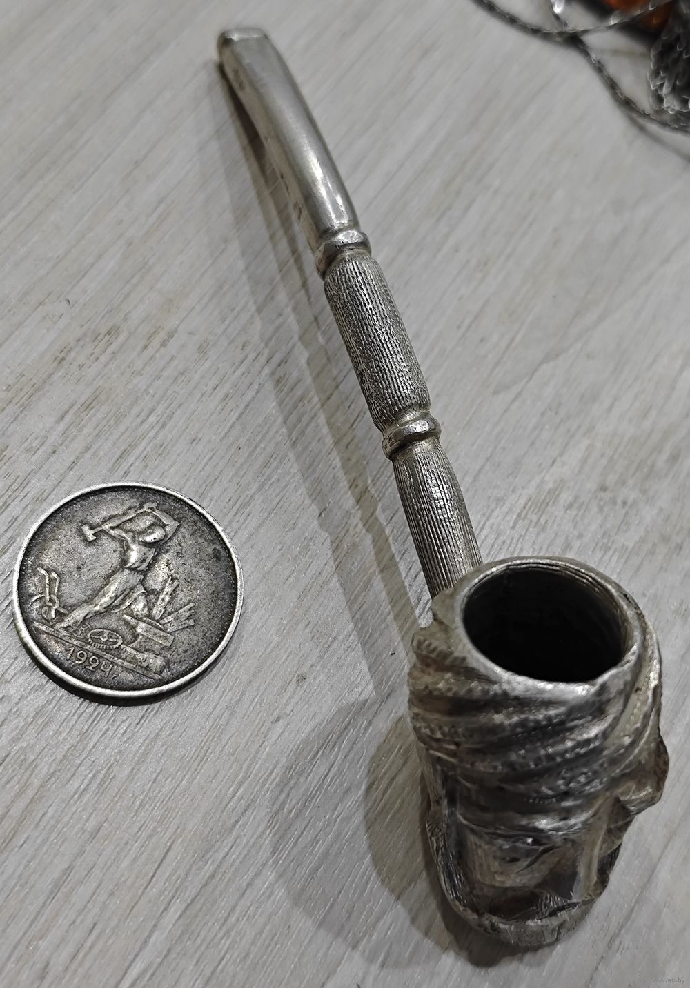 Антикварная, серебряная, курительная трубка. Голова Турка. Царизм. 133гр