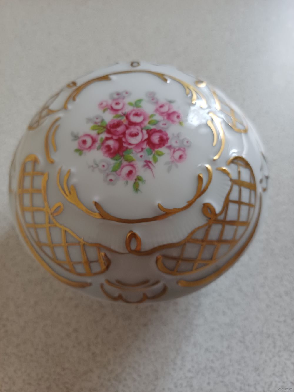 Великолепная объёмная фарфоровая шкатулка с декором ручной работы, золото, клеймо престижный Баварский мануфактуры диаметр 13см,отличное состояние, без потёртостей и сколов Бавария 60-е годы.Старая Германия
