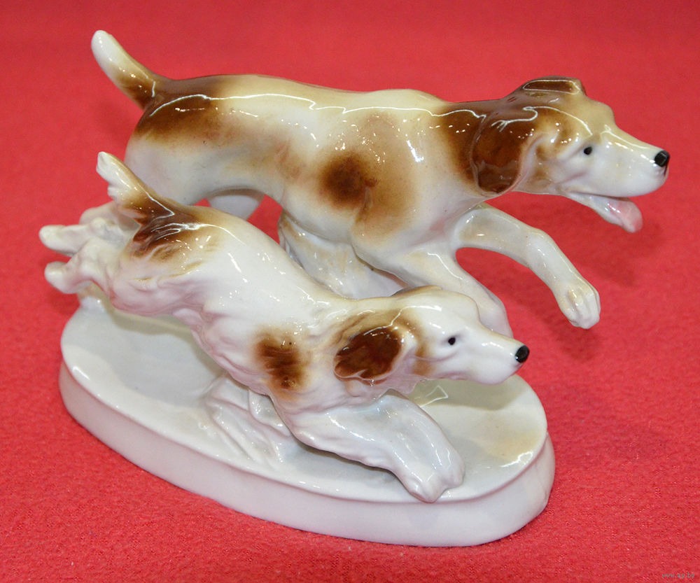 Старинная немецкая статуэтка 2-х бегущих борзых, 1950-г.г, в идеальном состоянии, без дефектов, сколов, склеек и реставрации. Длина 17 см., высота 11 см.
