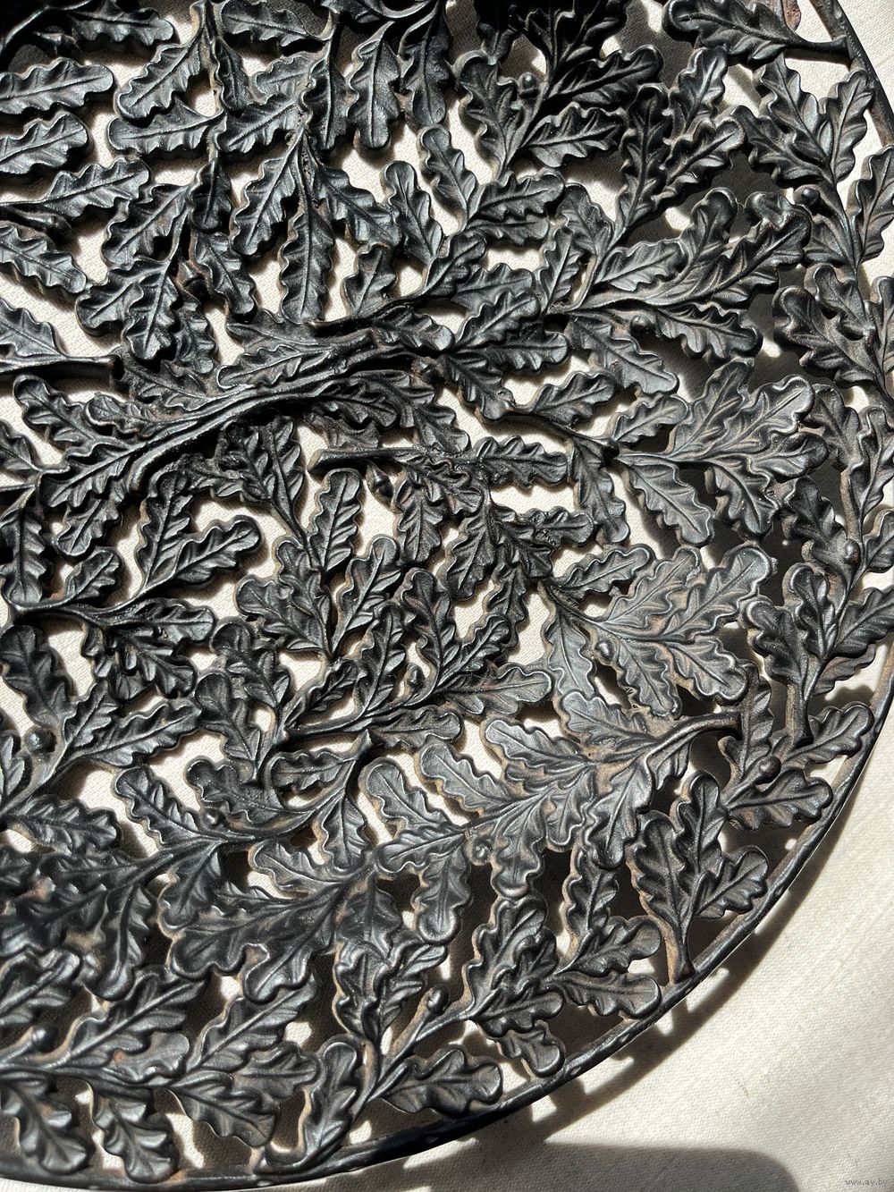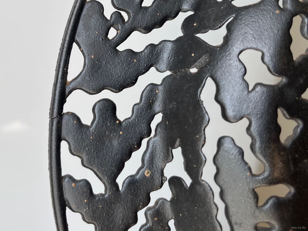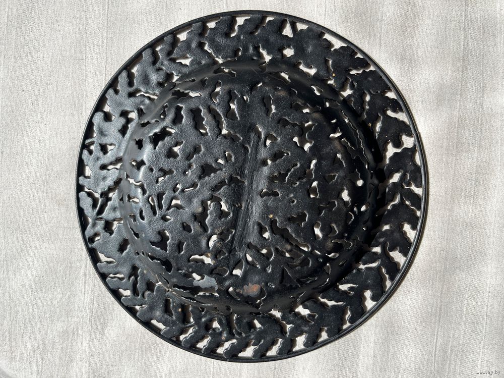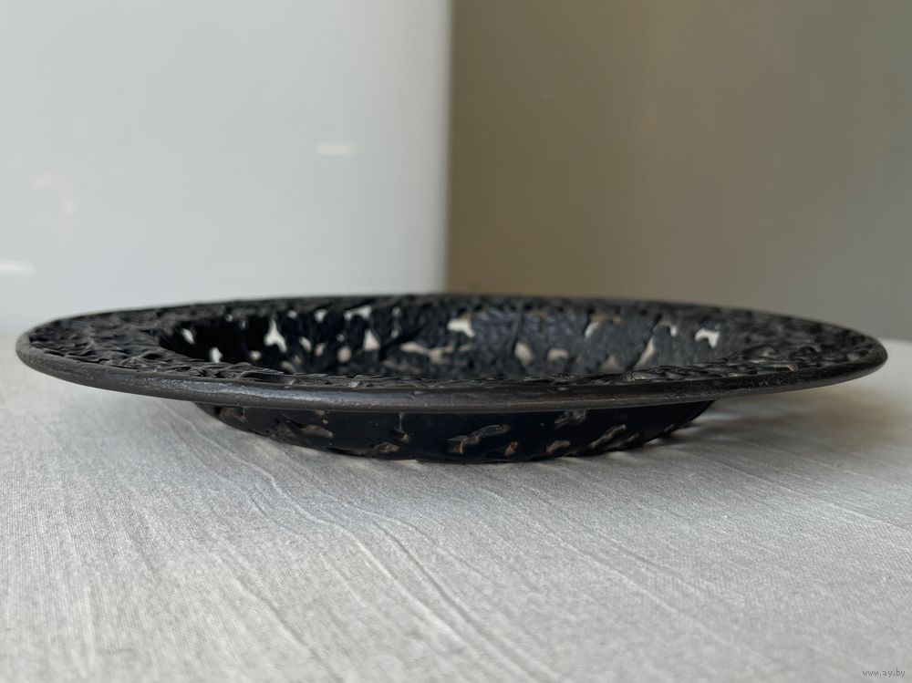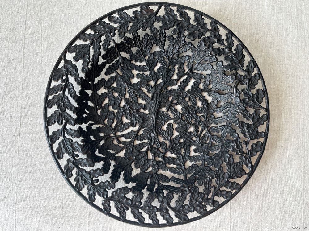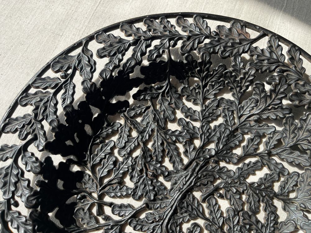 Антикварная тарелка чугун Дубовые листья литье 24,5см