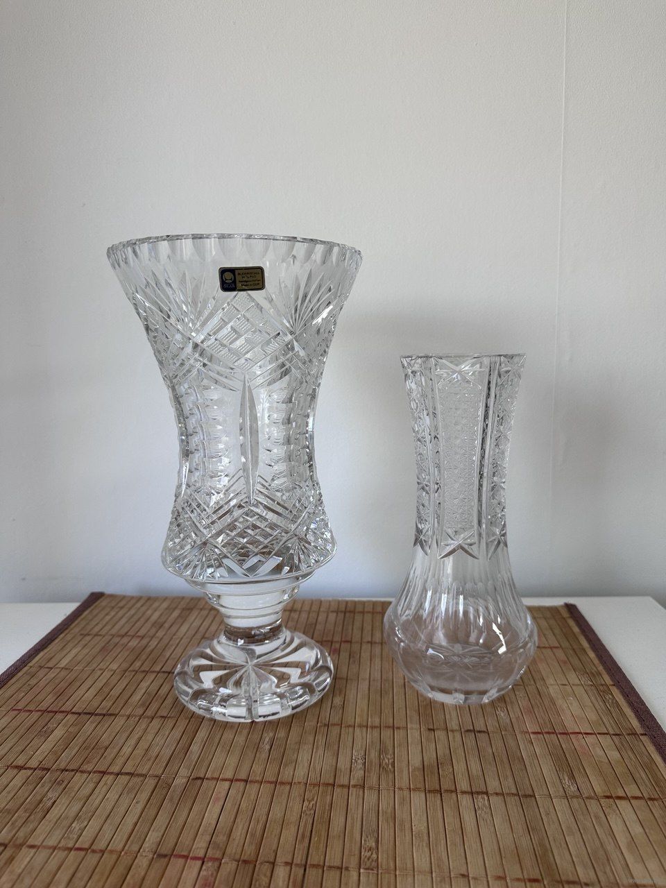 Продаются Хрустальные вазы. Ручной огранки. 1970г. Куплены в Германии. Большая ваза высота = 26 см. Маленькая высота 20см. Стоимость большой = 500р, маленькой = 350р. Новые пролежали в коробке.