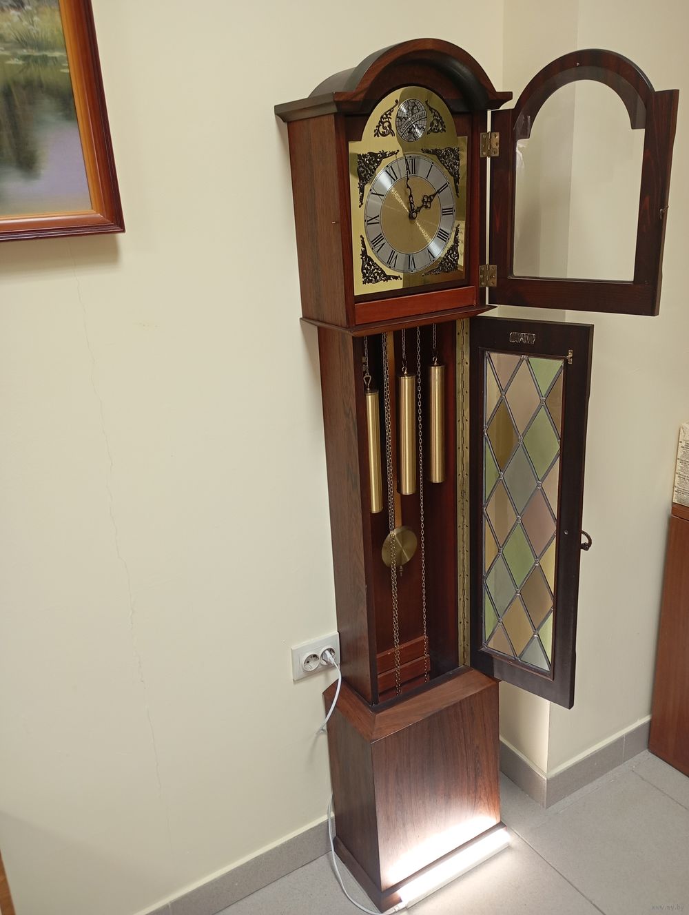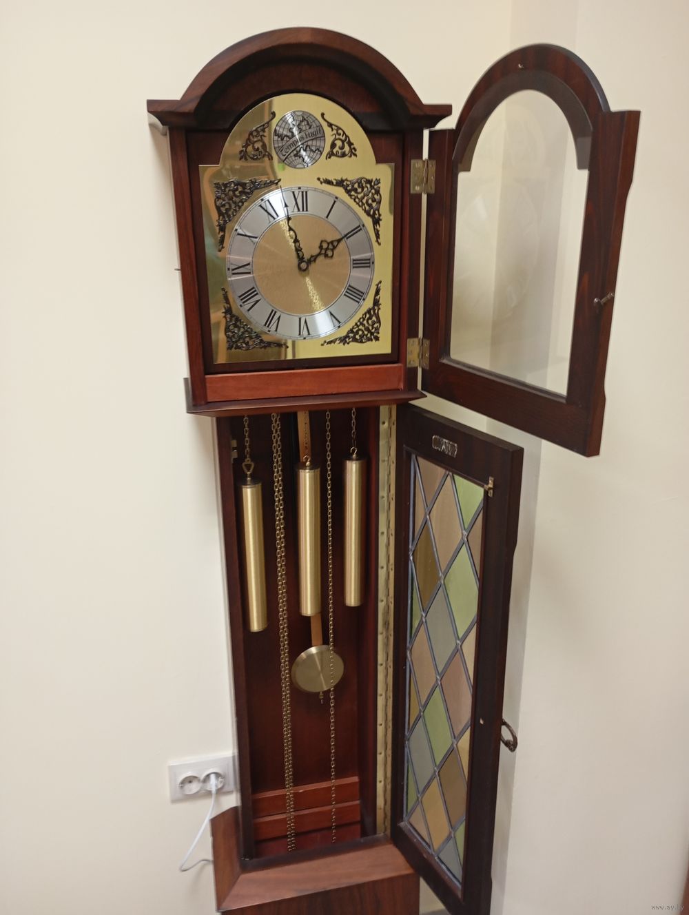 Старинные антикварные напольные механические часы,с четвертным вестминстерским боем,Германия!"TEMPUS FUGIT", что означает с латыни"ВРЕМЯ ЛЕТИТ"!Ход точный,отличное состояние,обслужены мастером!Красивый звонкий бой и мелодия!Отбивают час,полчаса и 15 мин.Тяжелые латунные гири(3 шт.) на цепочках и маятник!Корпус из красного дерева,орех!Высота 176 см,ширина 36 см,глубина 21см.Отличные,в коллекцию!