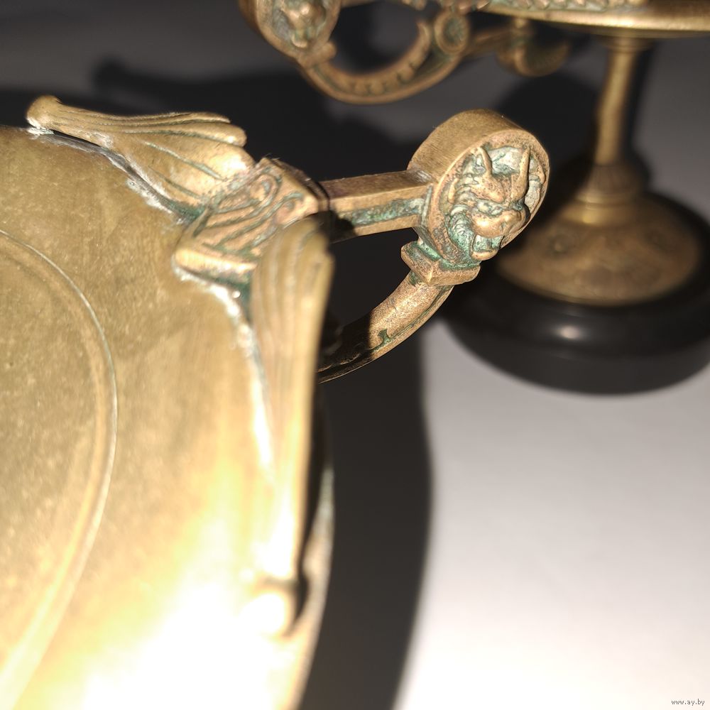 Очень красивые чаши. Бронза,позолота. Чёрный мрамор подставки. В отличном состоянии. Высота 12 см. Ширина 22 см.