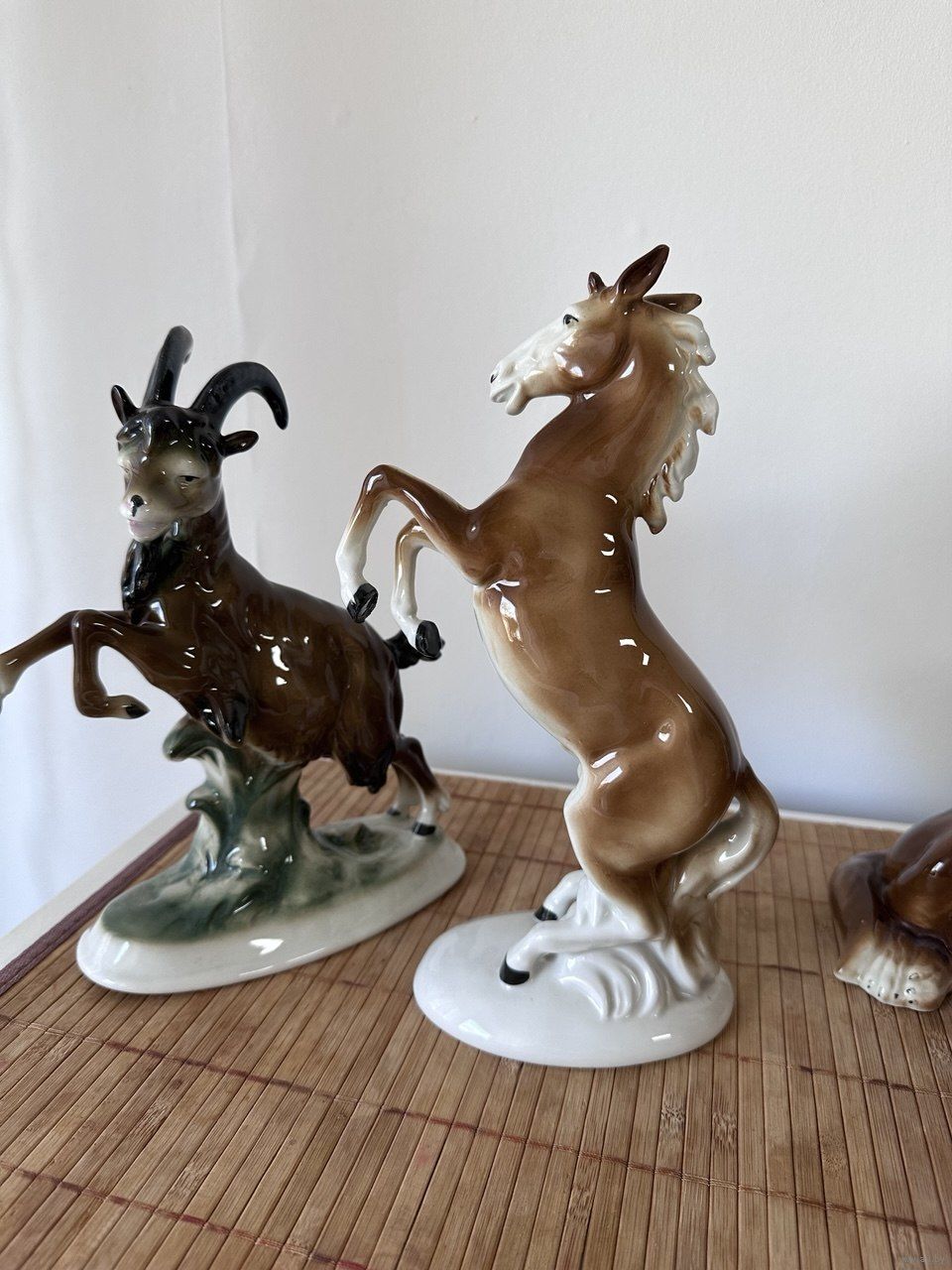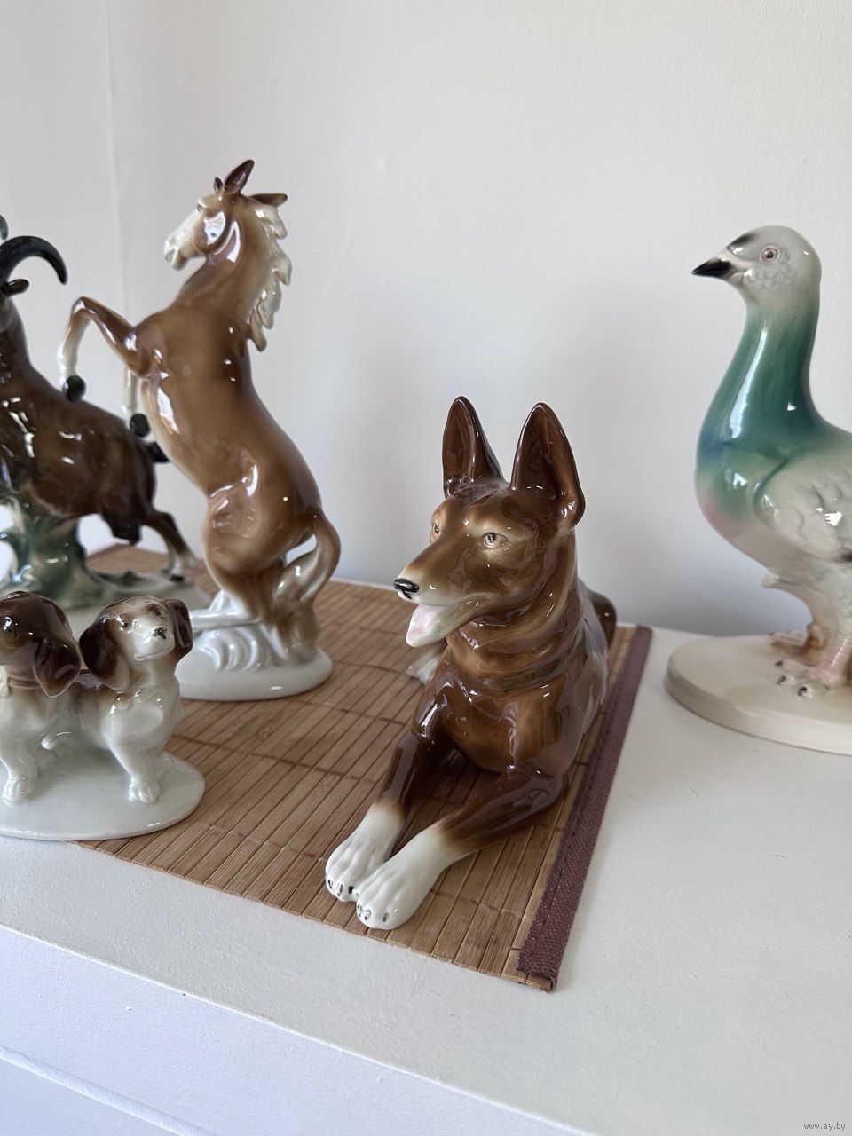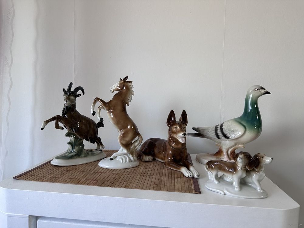 Антикварные статуэтки. Привезены из Германии 1970г. Высота статуэток 23-24 см. (Козел, Лошадь). Голубь высота = 23см, Собака L= 25 см, h= 15 см. Собачки: h= 9см, L= 13см. Фарфор. Все новое.