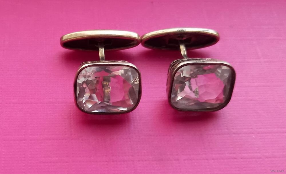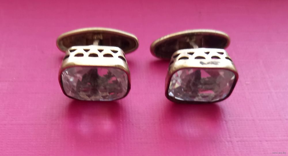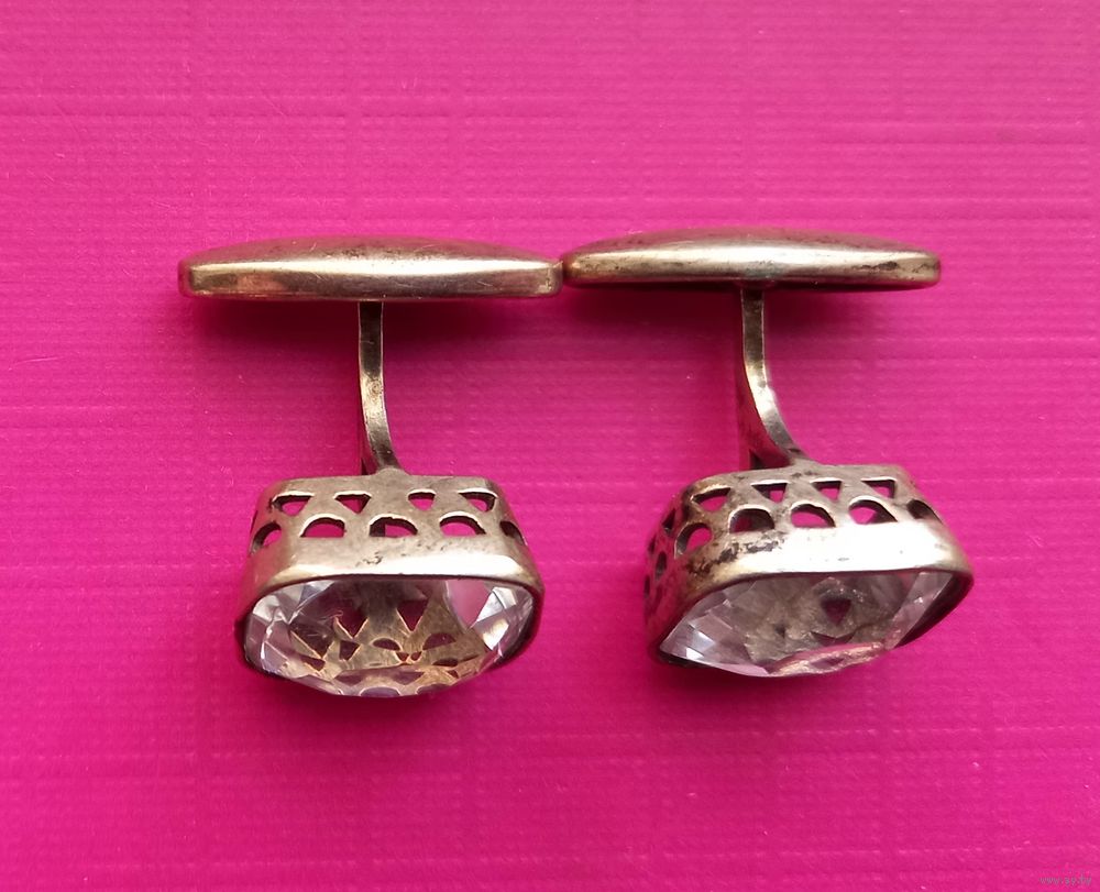 Антикварные Запонки СССР Горный Хрусталь.Серебро 875.В Позолоте