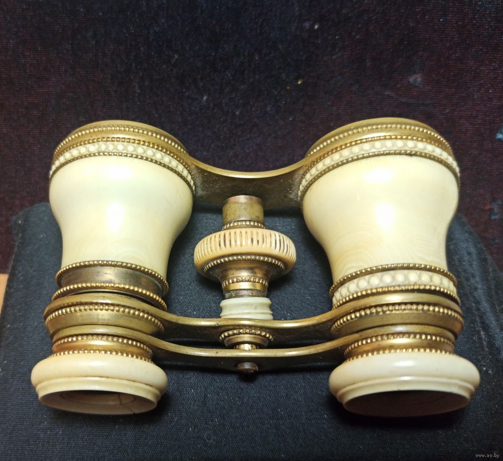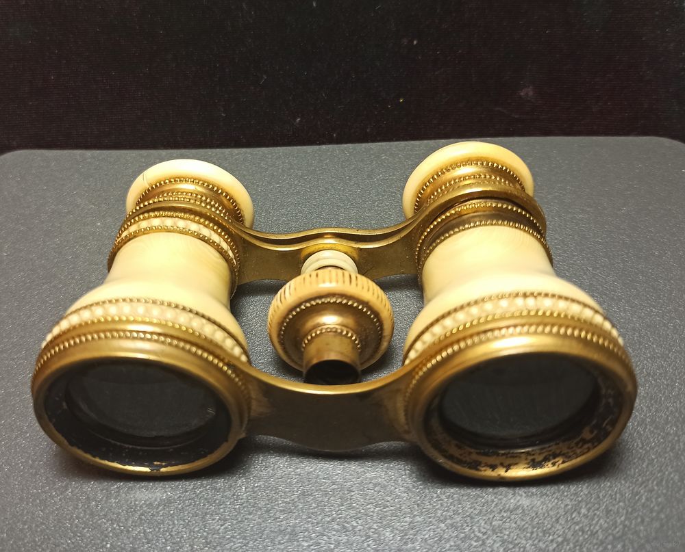 Антикварный английский театральный бинокль из кости и латуни, приблизительно 10-кратное увеличение, в рабочем состоянии. Имеет резную бисерную отделку, около 1900 года.