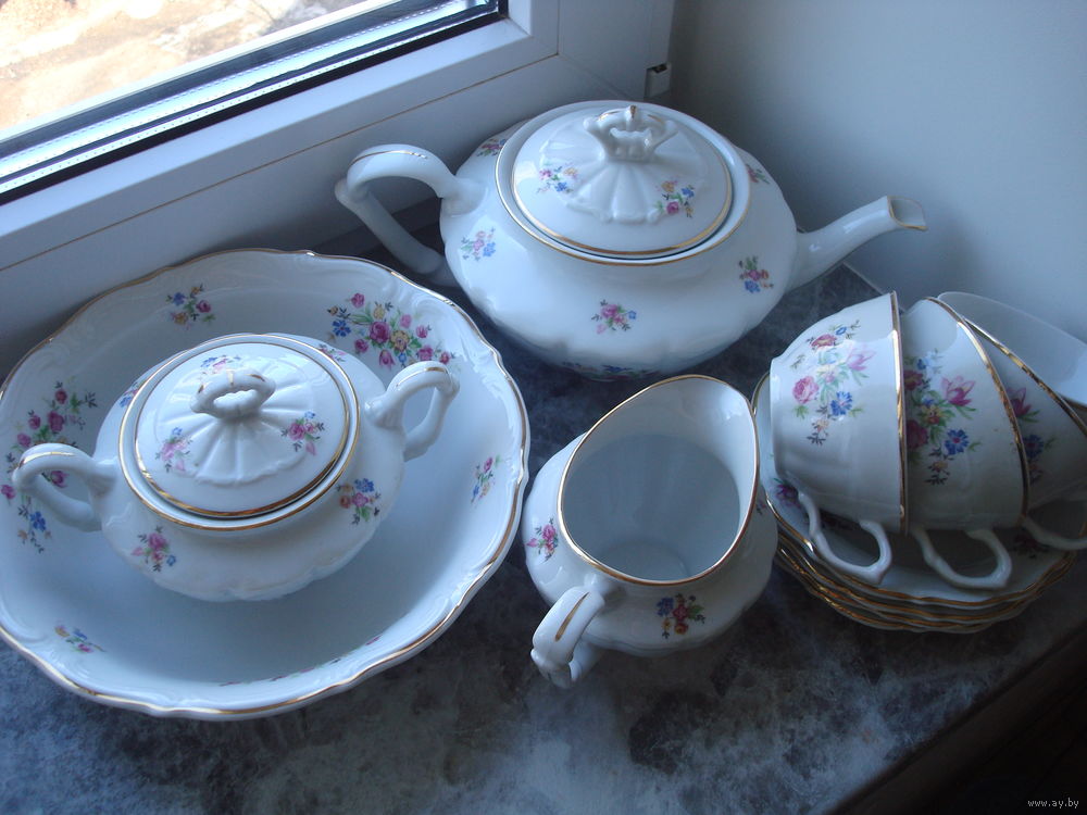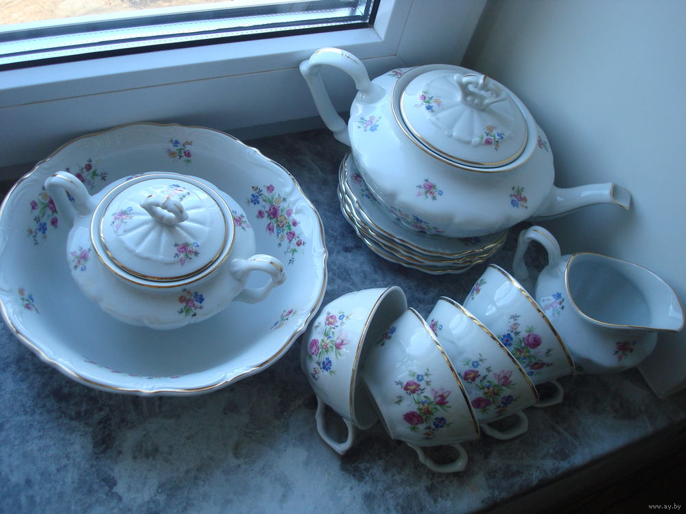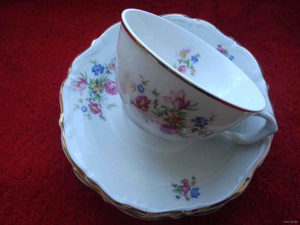 Антикварный чайный сервиз на 4 персоны. Старая Польша. Винтаж.