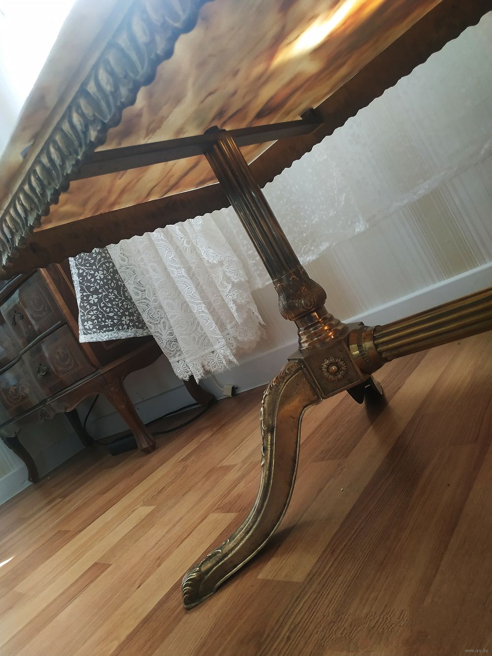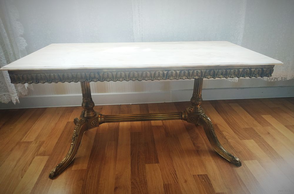Бронзовые детали разбираются на 4 части : 2 ноги ,распорка и каркас под столешницу.