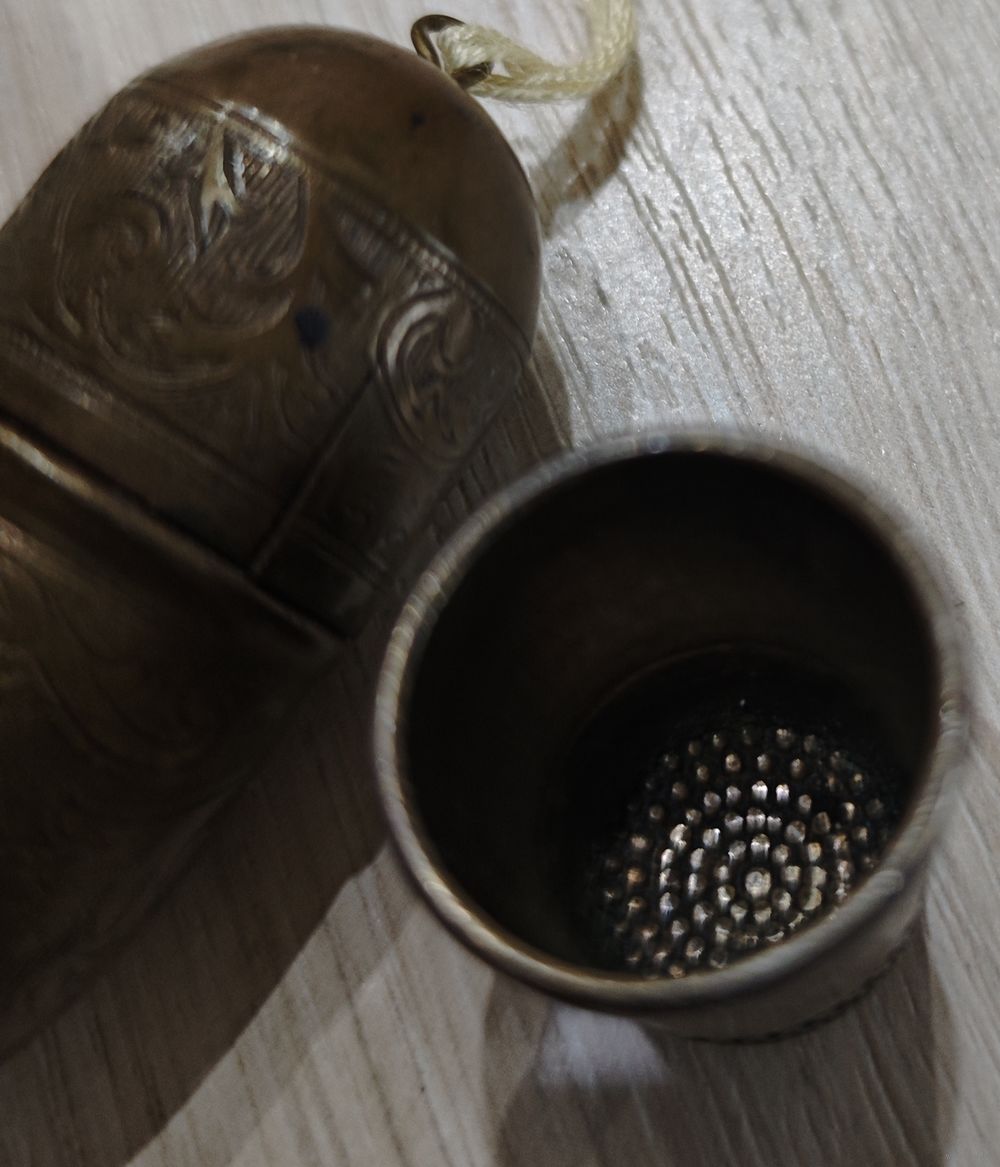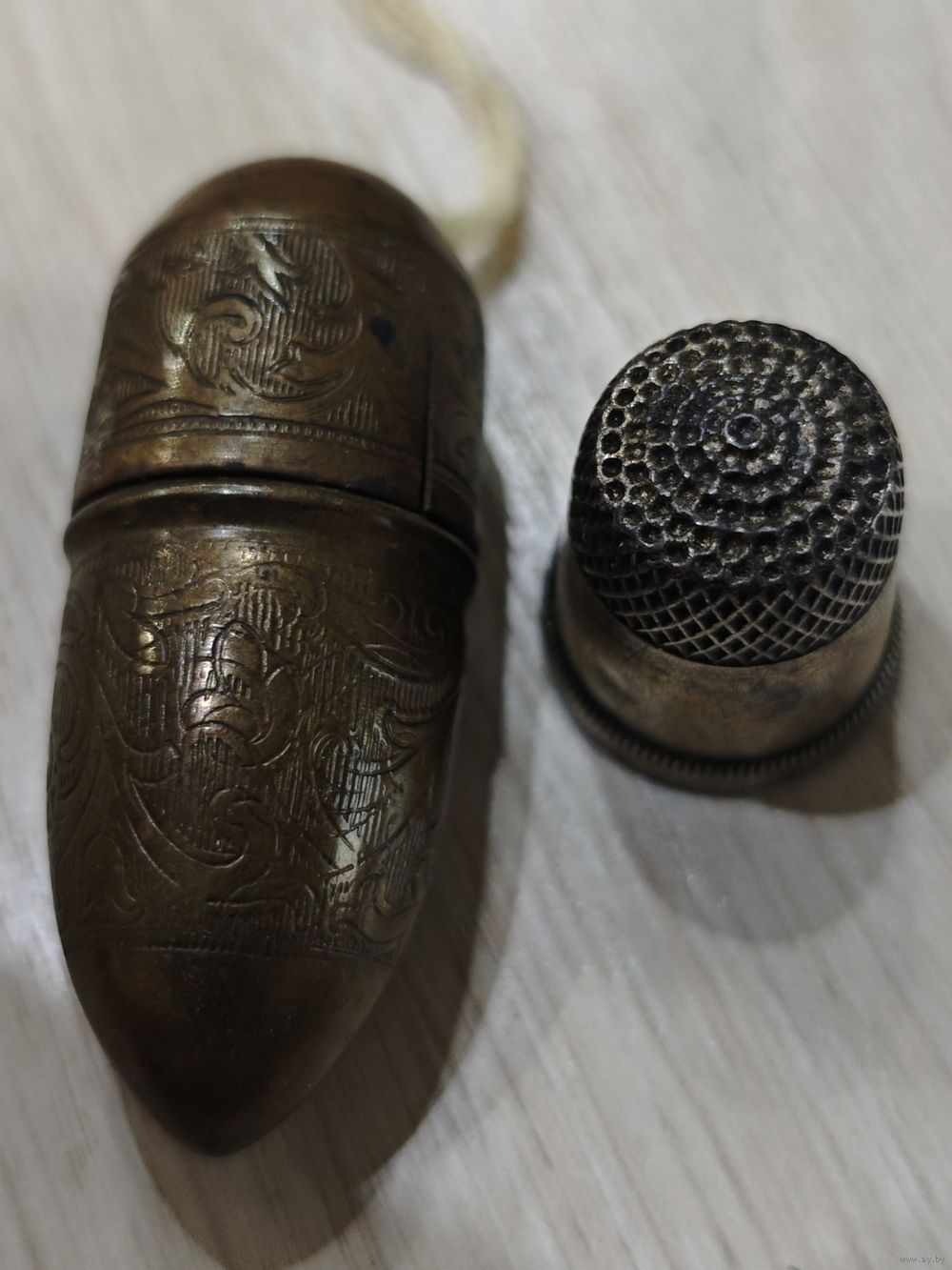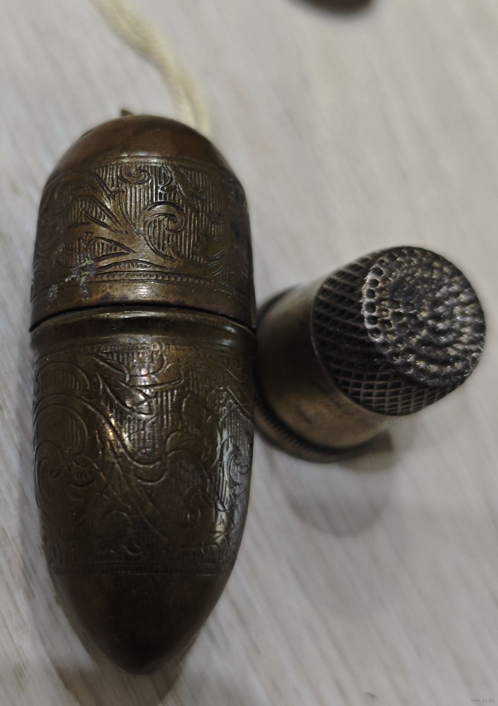 Антикварный набор - наперсток (серебро) игольница (медная) СССР 1940г.