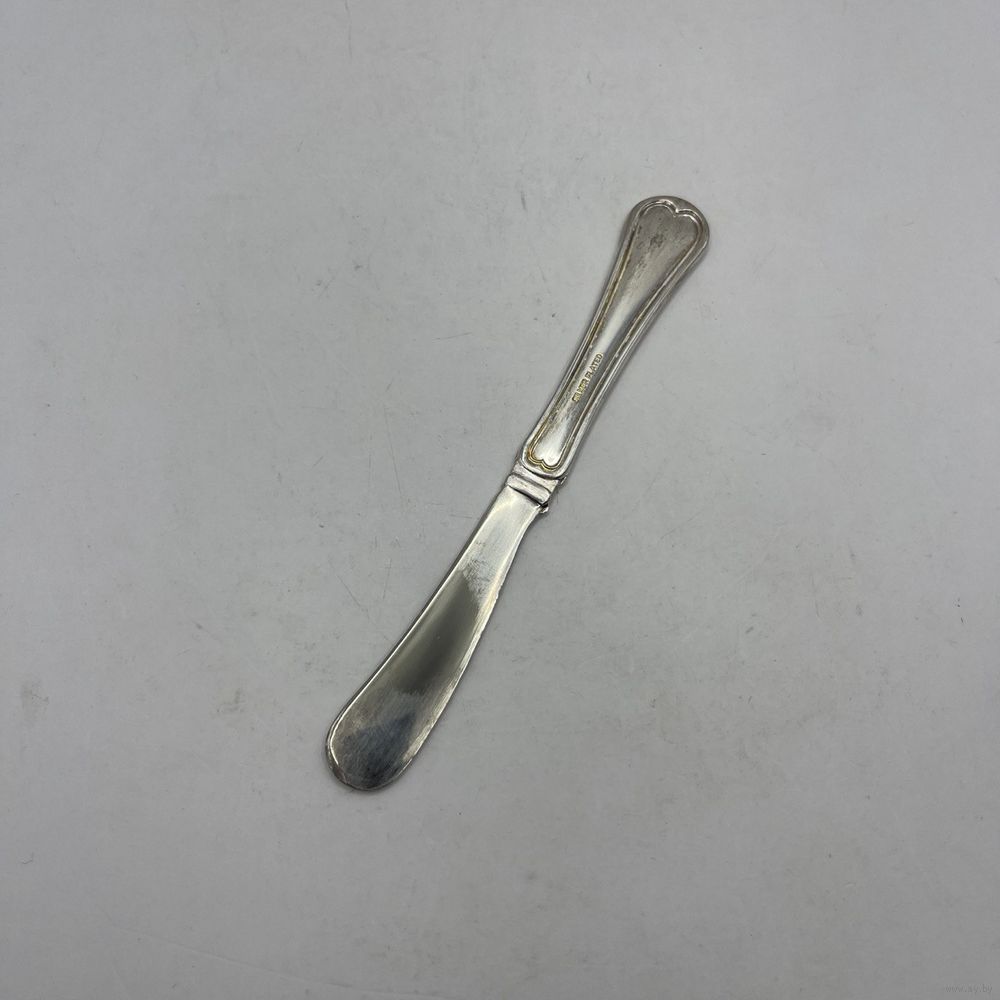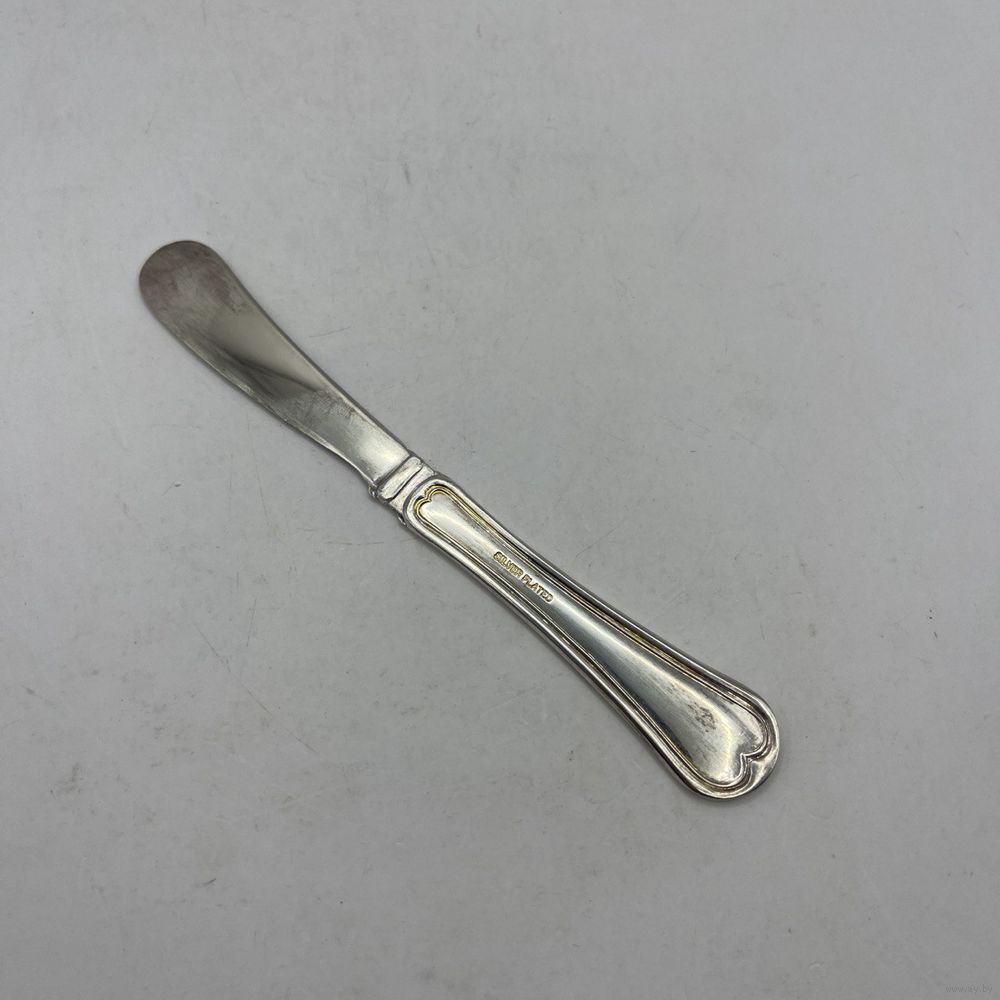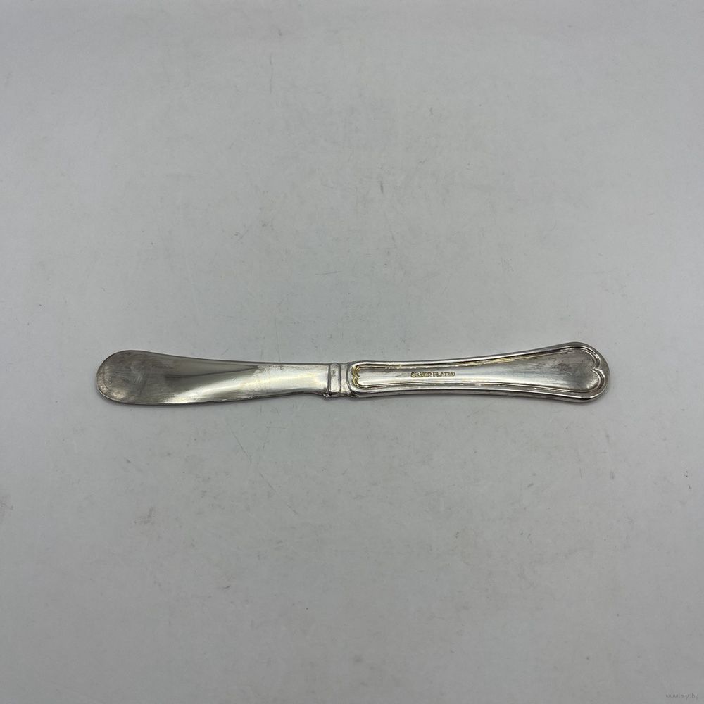 Антикварный посеребренный (silver plated) нож для масла или паштета. Италия. Клеймо. 1930-е г.г. Длина 14 см. Естественная патина.