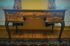 Сделан из дерева, из массива дерева ореха.В нем 5 выдвижных ящиков: один широкий центральный ящик и по два меньших с каждой стороны. Панель и фасады ящиков украшены декоративной инкрустацией.
