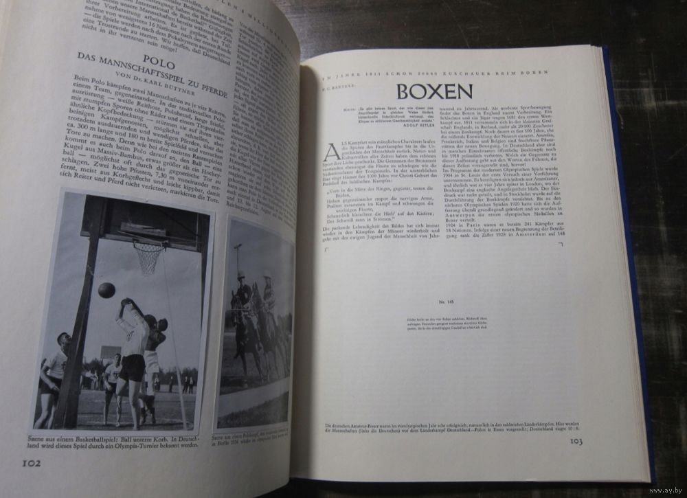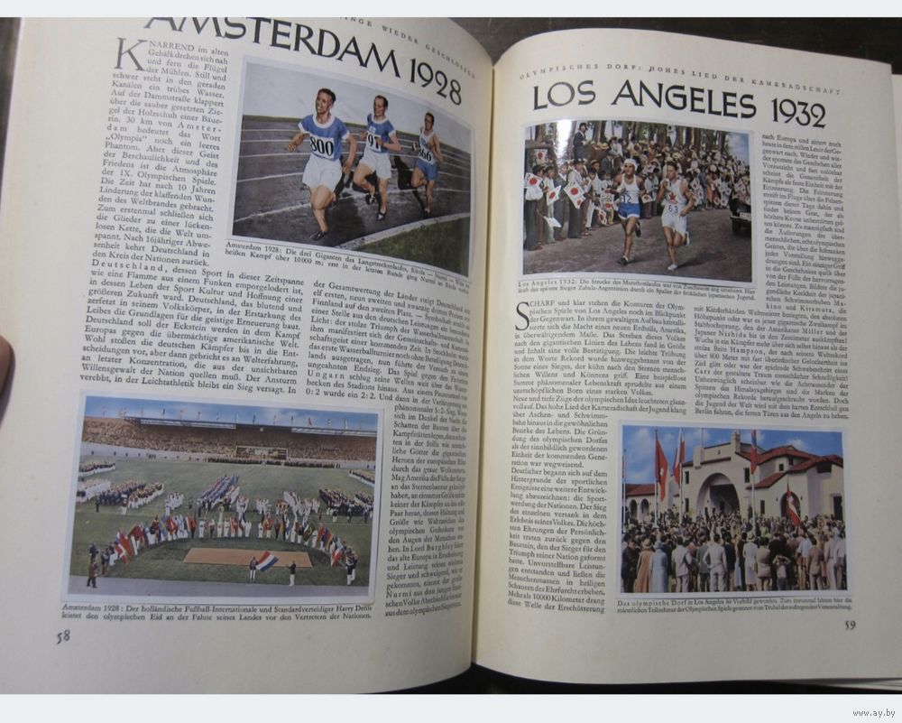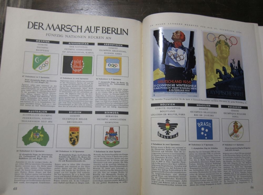 Оригинальное немецкое издание 1936 года, посвященное Олимпийским играм. Этот альбом выпускался сигаретной фабрикой Cigaretten-Bilderdienst как коллекционное издание, в которое владельцы вручную вклеивали карточки-фотографии, собиравшиеся при покупке табачной продукции.