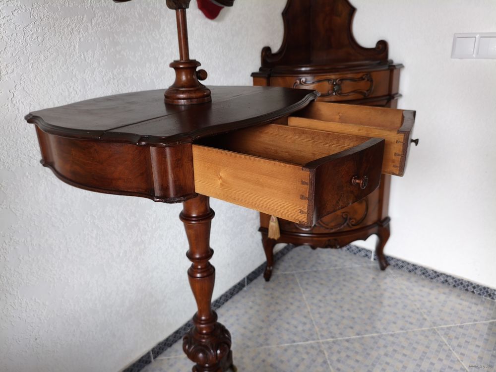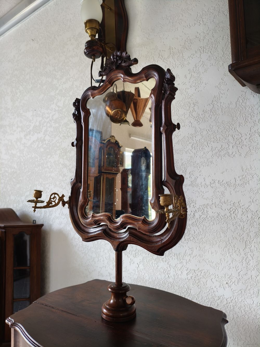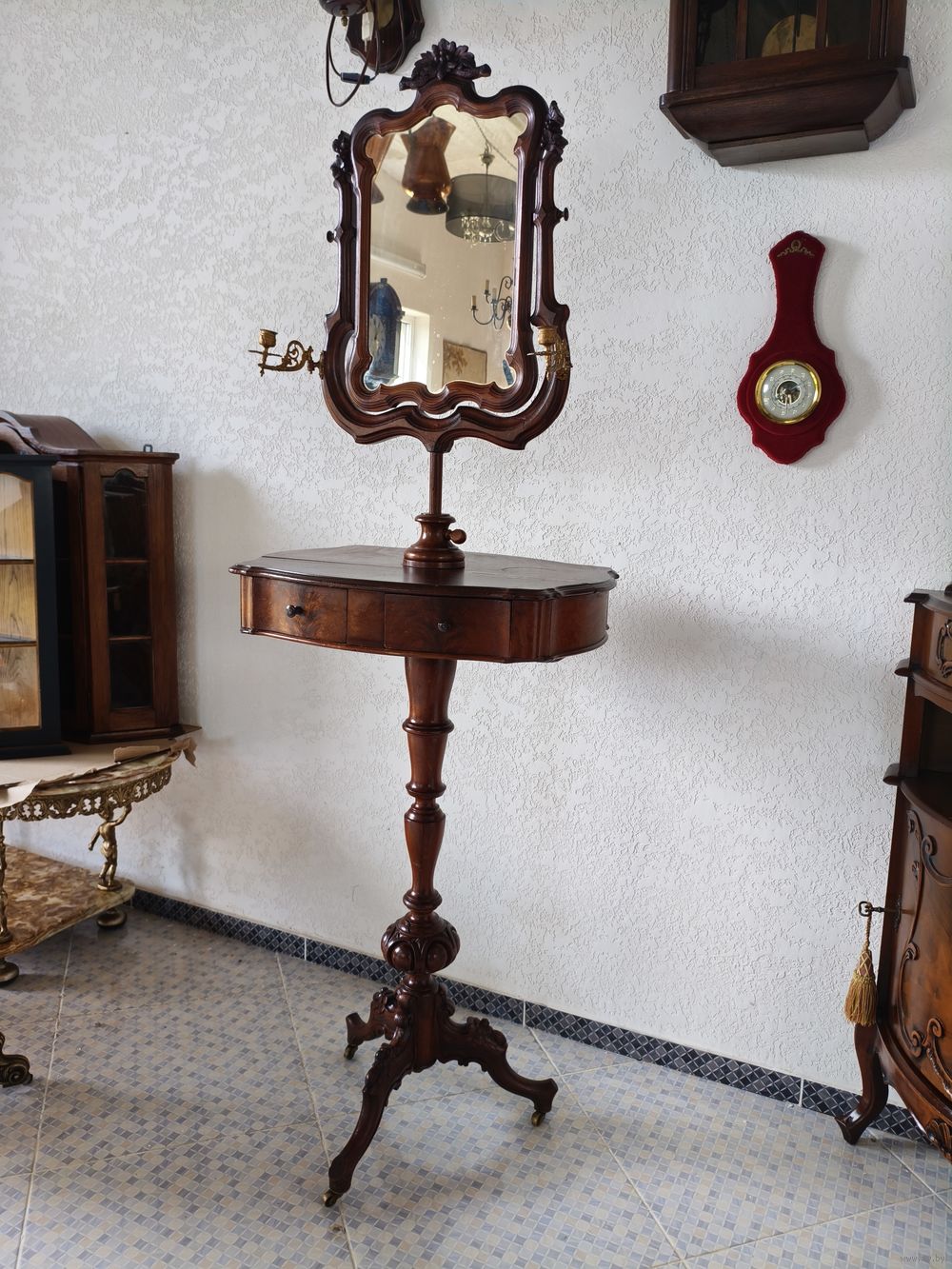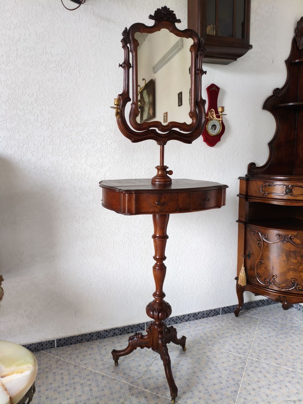 Такие предметы мебели были популярны в XIX веке и предназначались для мужчин. Оснащен регулируемым зеркалом-псише, подсвечниками и небольшими ящиками для бритвенных принадлежностей.