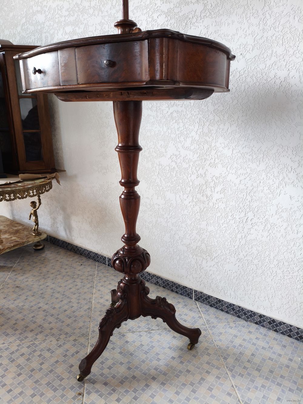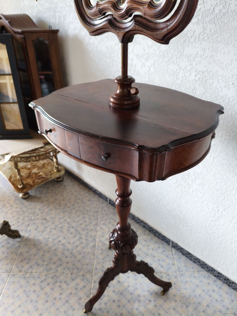 Антикварный столик для бритья или туалетный столик на одной ножке, выполненный в стиле рококо.