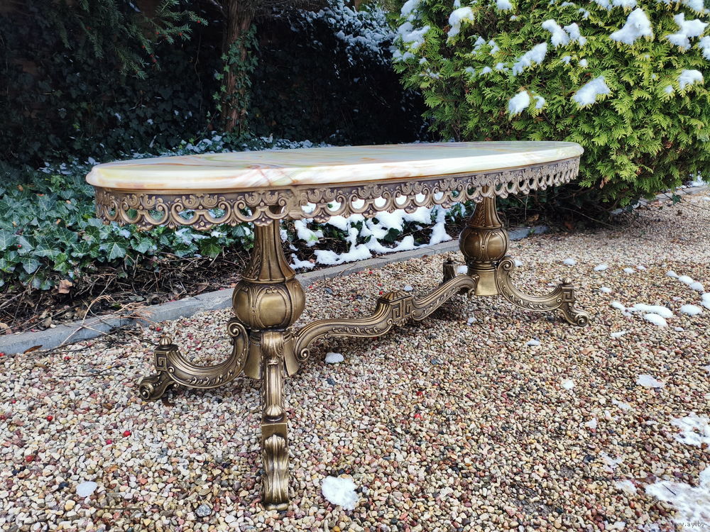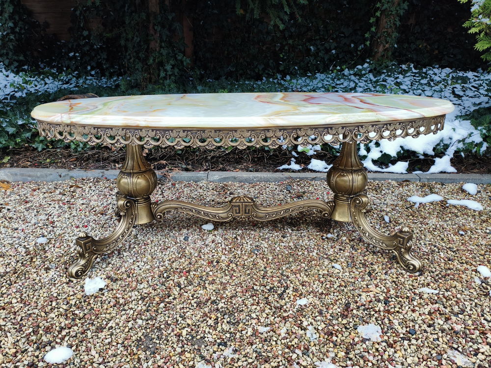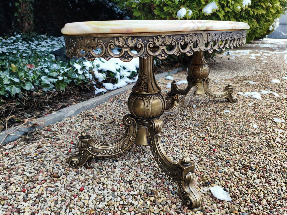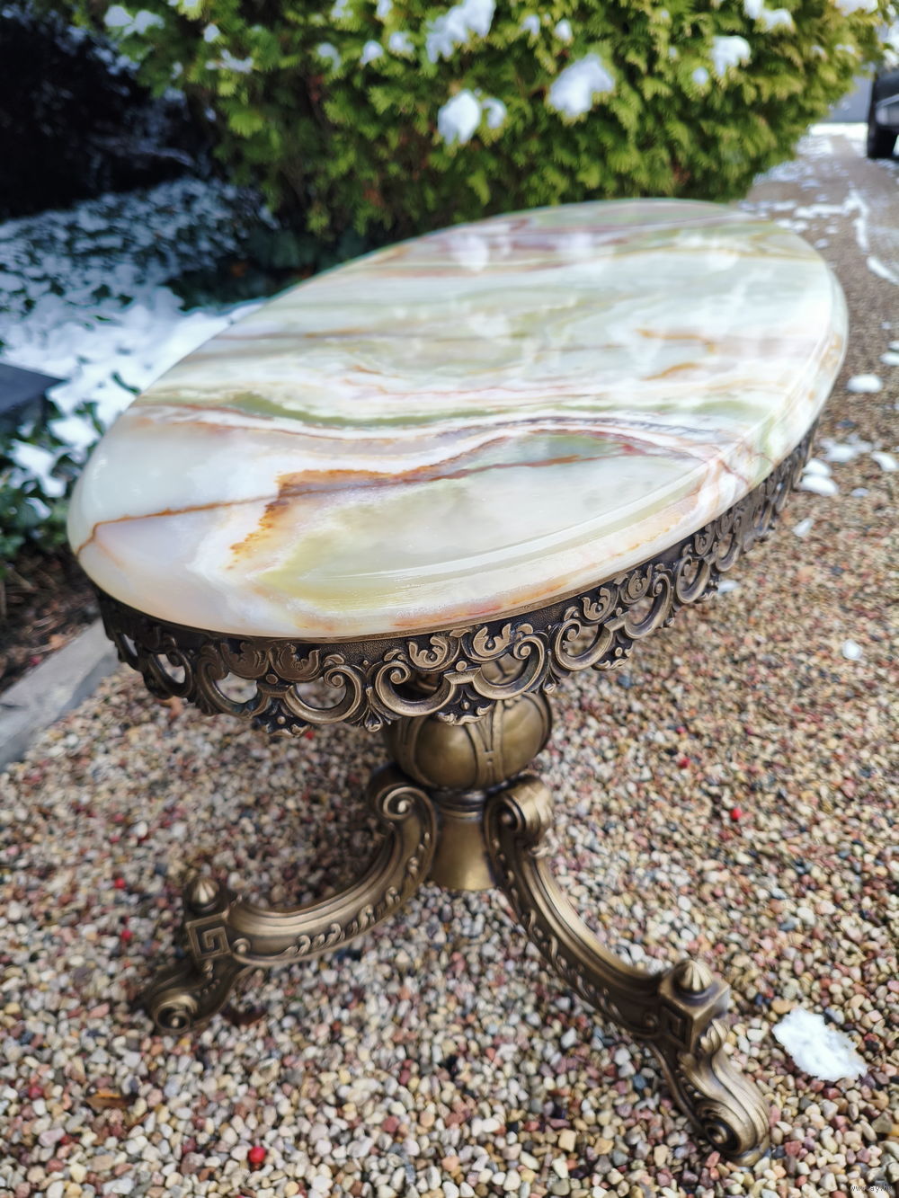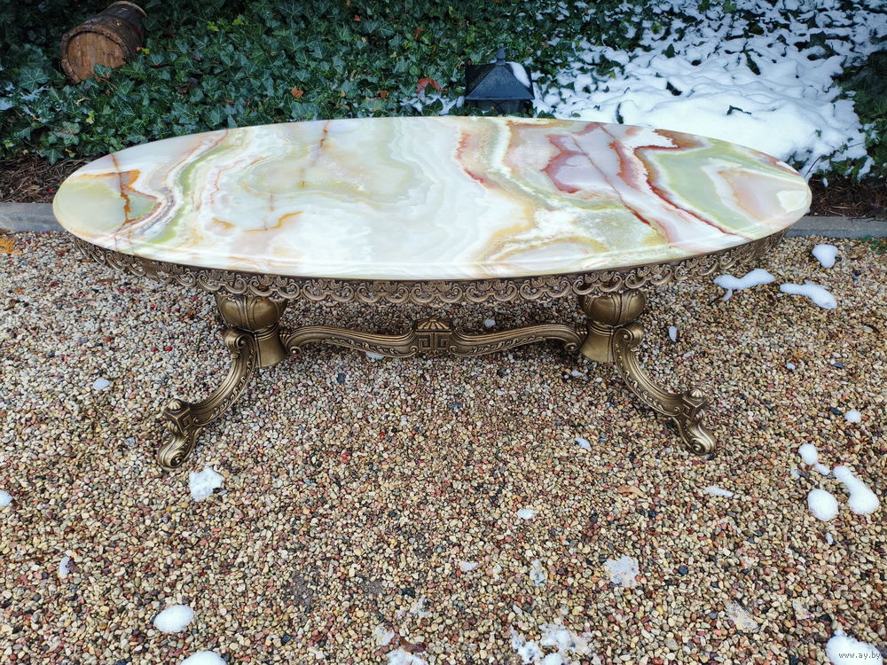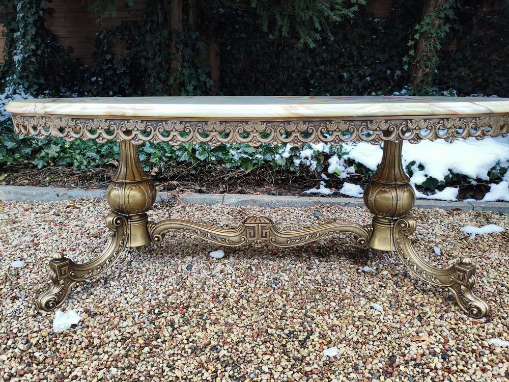 Редкой красоты, Антикварный Журнальный Стол, Оникс, Бронза, в стиле Французского Рококо, ХХ век.