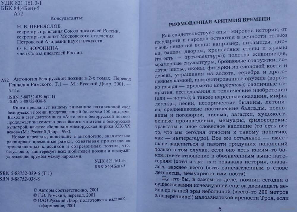 Цена за 2 тома. Тираж 1000 экз. 518+512 стр. В антологии представлены пятивековой свод белорусской поэзии и более 150 авторов, от К. Туровского до современных авторов.