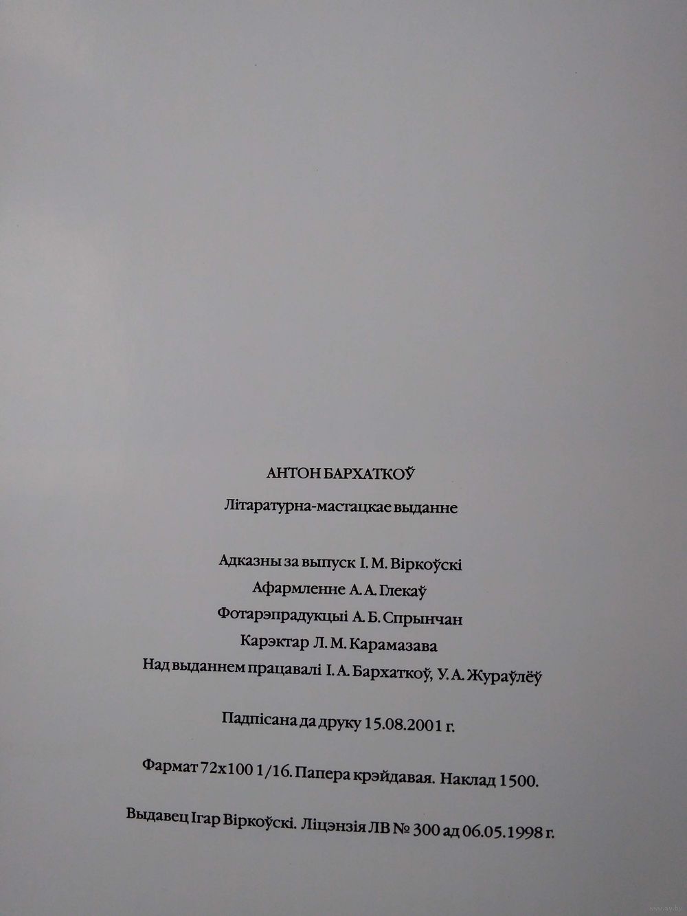 Кніга пра беларускага мастака Антона Стэфанавіча Бархаткова. Творы мастака знаходзяцца ў Нацыянальным мастацкім музеі Беларусі, Музеі сучаснага выяўленчага мастацтва ў Мінску, у музеі імя П.Масленікава ў Магілёве, у прыватных калекцых у розных краінах свету.