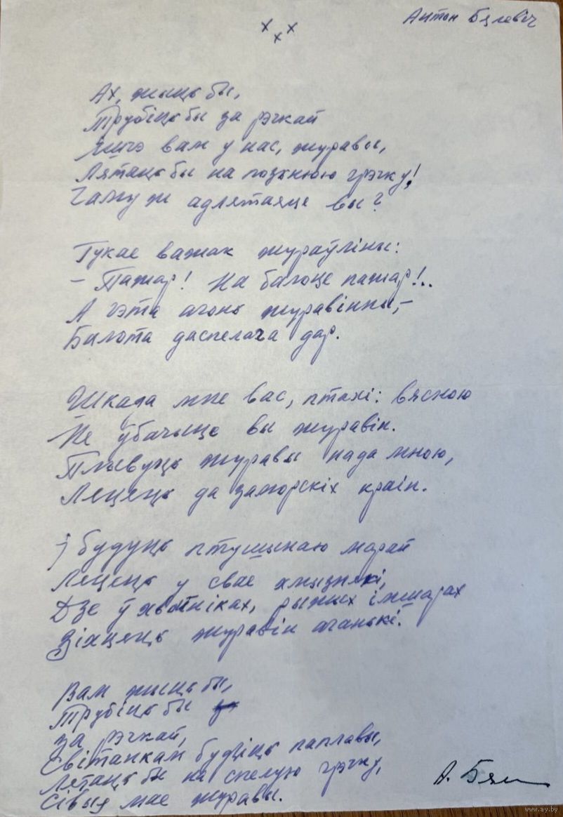 АНТОН БЯЛЕВІЧ рукапіс верша да зборніка Дзень Паэзіі 66
