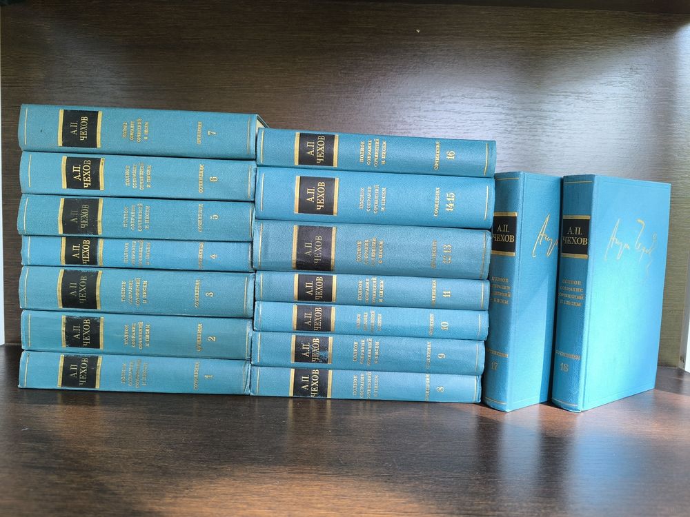 Полное собрание сочинений Антона Павловича Чехова в восемнадцати томах - первое научное издание литературного наследия великого русского писателя. Оно представляет собой часть Полного собрания сочинений и писем в 30 томах - это 18 томов (в 16 книгах), куда вошли все художественные и коммерческие тексты Чехова. Оно ставит перед собой задачу дать с исчерпывающей полнотой все, созданное Чеховым. При этом основные тексты произведений сопровождаются публикацией ранних редакций и вариантов. Все тома из этого комплекта представляют собой первый вариант издания собрания, выходивший с 1974 по 1982 год, тиражом в 300 000 экземпляров. Отличительной особенностью томов является прямоугольная рамка, нанесенная золотым тиснением на обложку каждого тома.