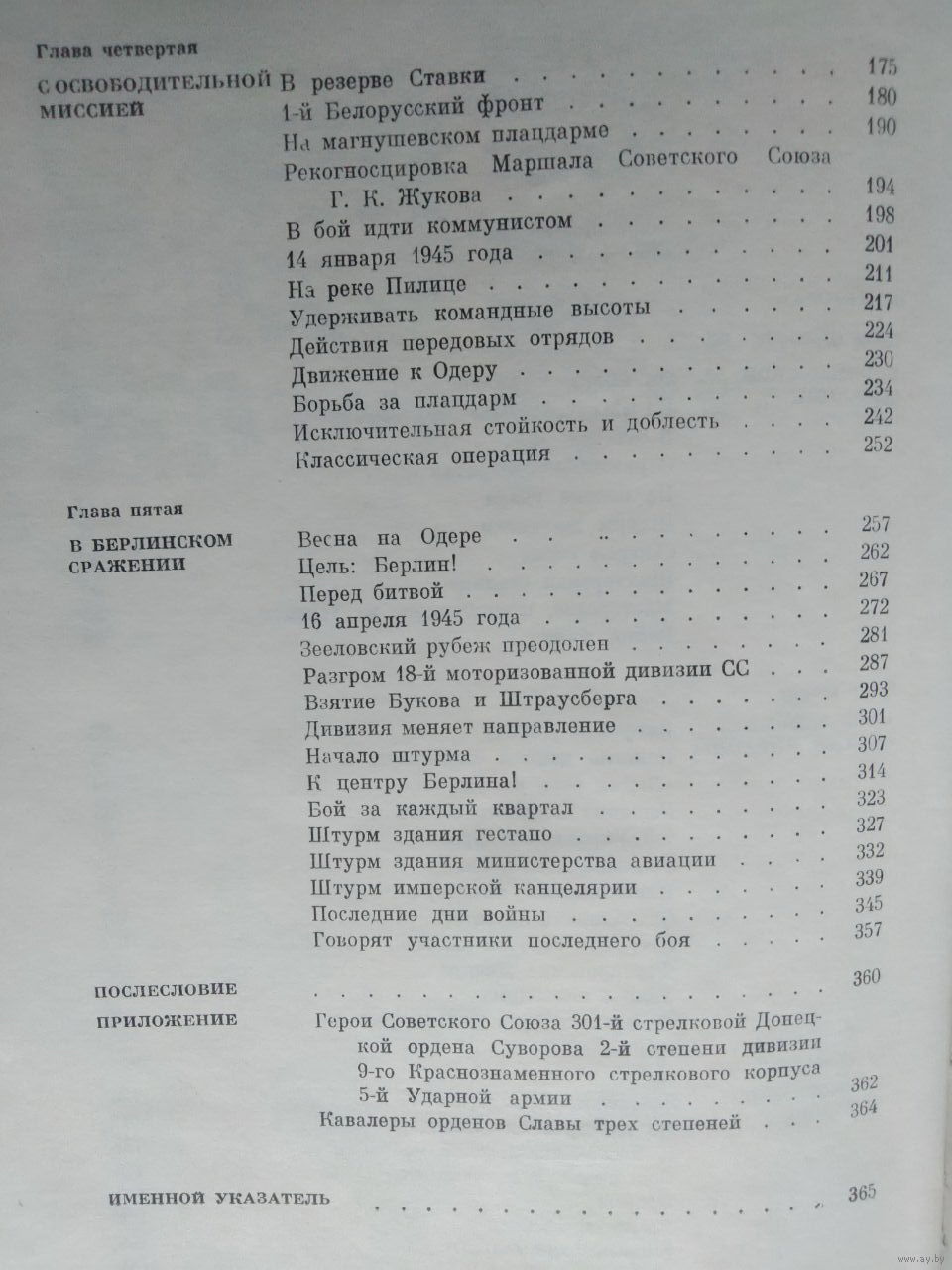 Книга написана генерал-майором Героем Советского Союза В. С. Антоновым, бывшим командиром 301-й стрелковой Донецкой ордена Суворова 2-й степени дивизии, входившей в основном в состав 5-й Ударной армии и действовавшей на направлении главных ударов ряда фронтов. Основным содержанием книги является показ массового героизма бойцов и командиров рот, батальонов и полков 301-й стрелковой дивизии, воспитавшей 49 Героев Советского Союза и пять кавалеров орденов Славы трех степеней. Интерес читателя несомненно привлекут главы, посвященные Берлинской операции. Книга представляет интерес для широкого читателя.