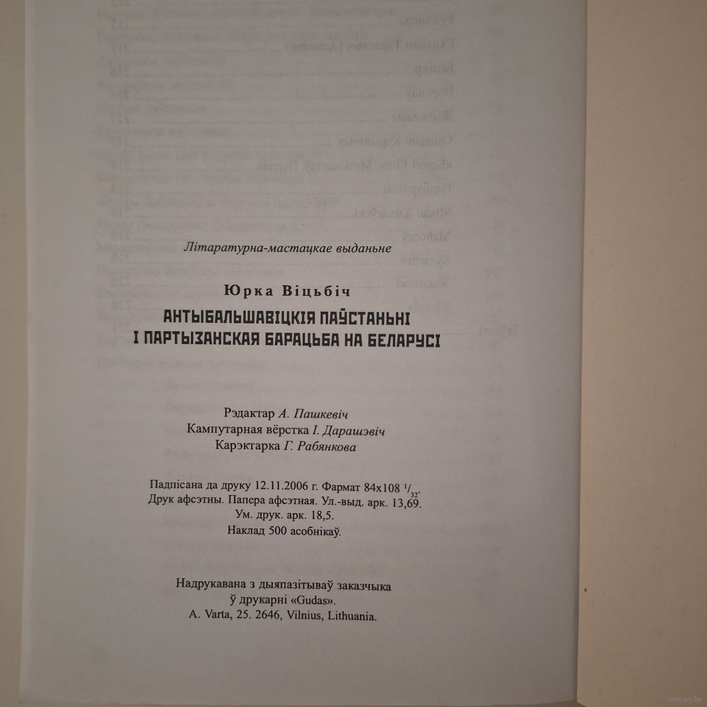 Антыбальшавіцкія паўстаньні і партызанская барацьба на Беларусі (Юрка ВІЦЬБІЧ)