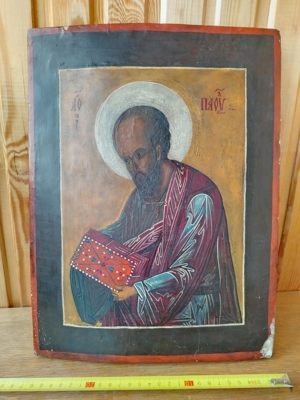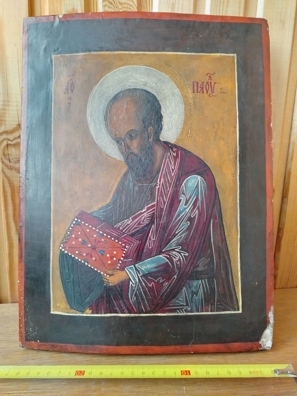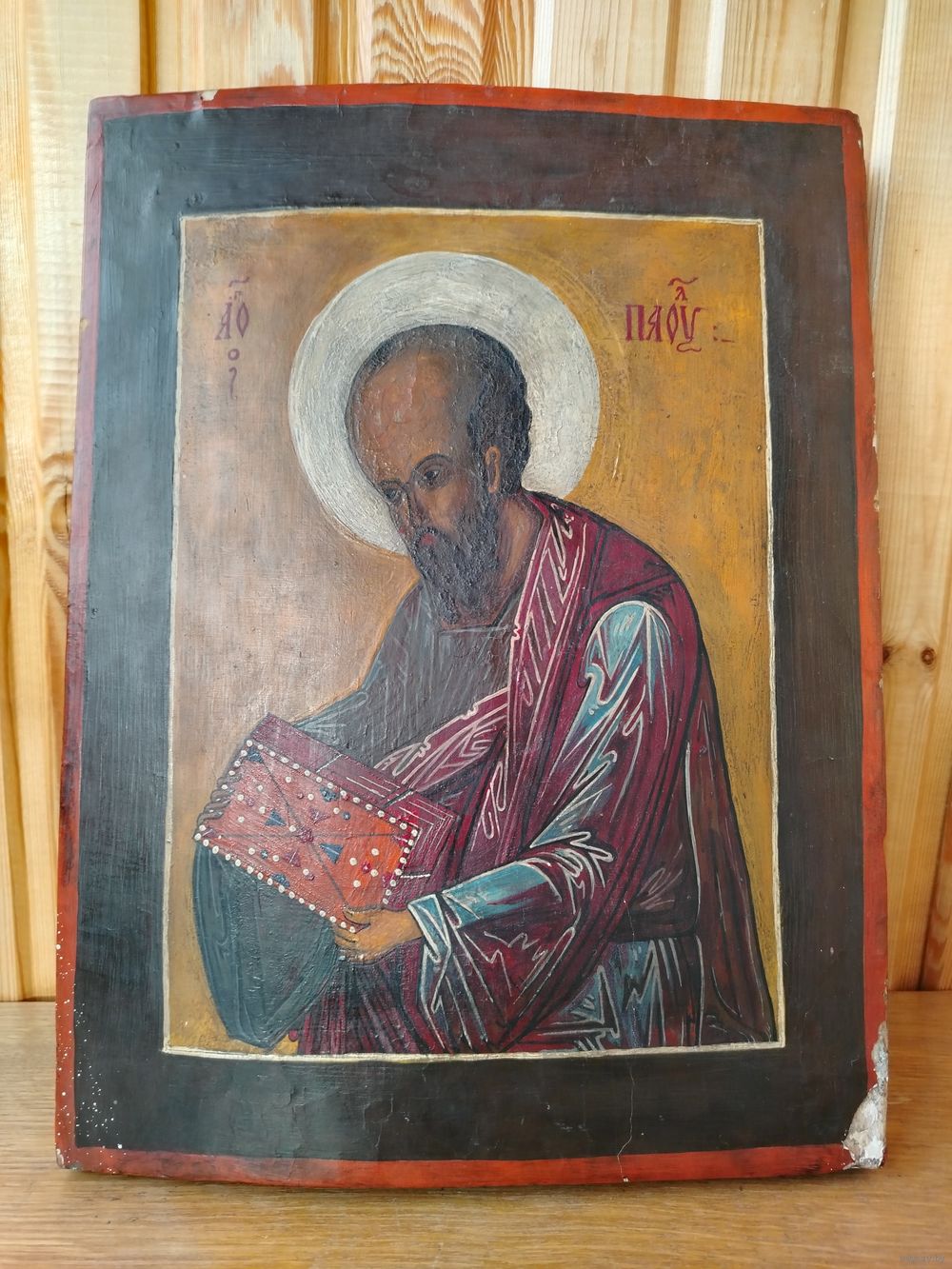 Икона "Апостол Павел", XIX век — исключительный памятник духовного искусства и православной традиции. Редкая и бережно сохранённая святыня, которая станет жемчужиной любой коллекции или домашнего иконостаса.