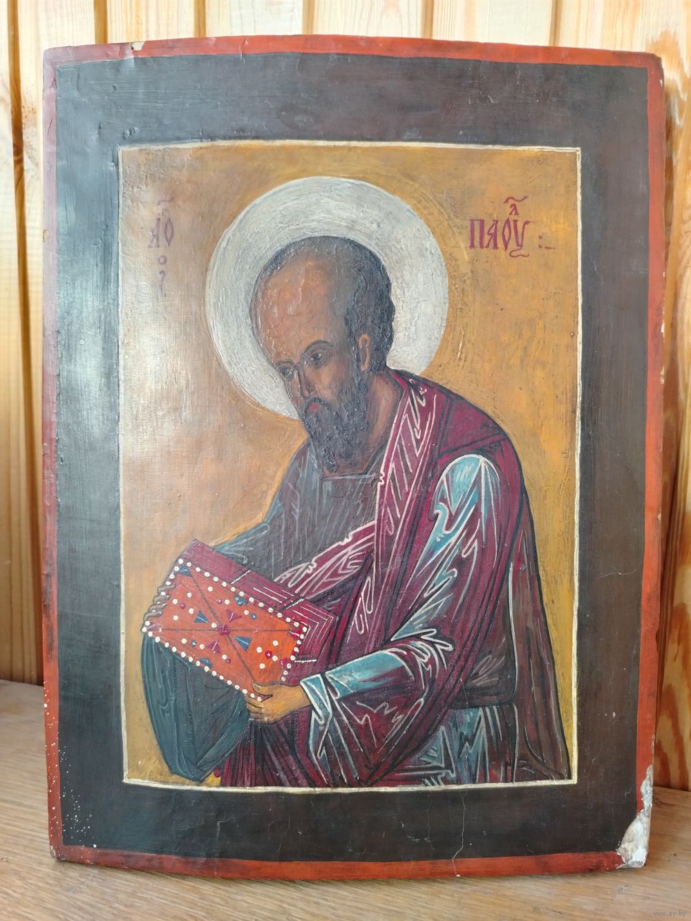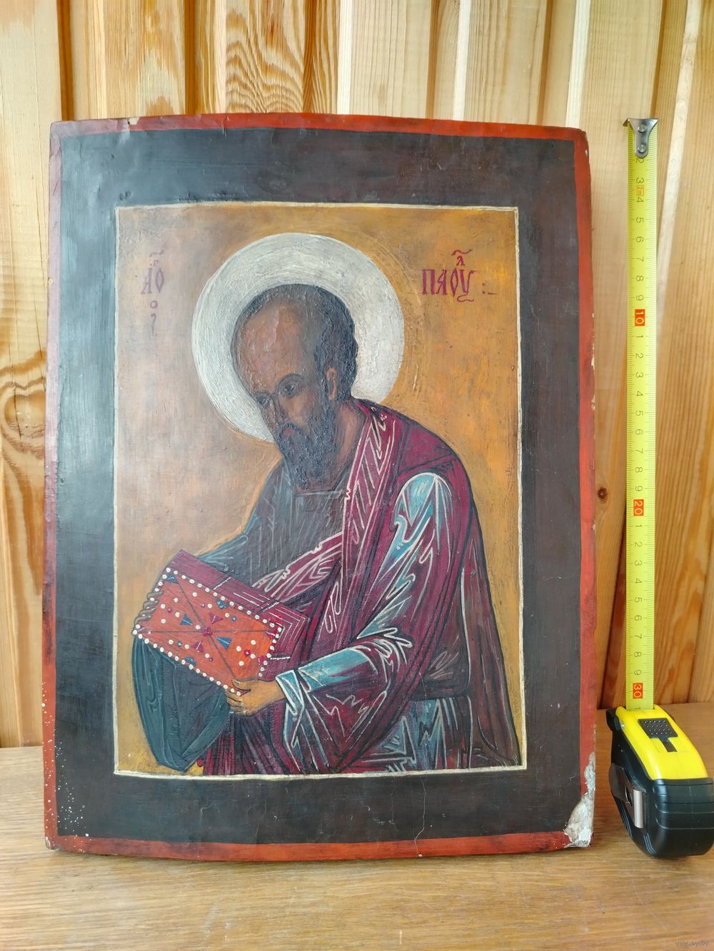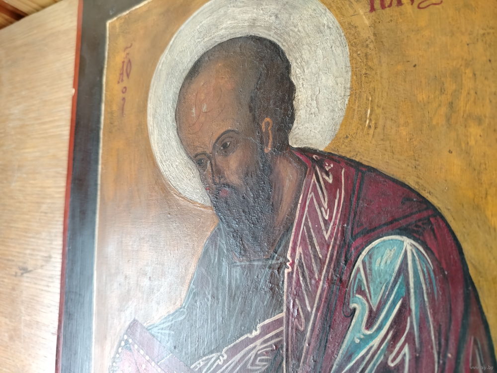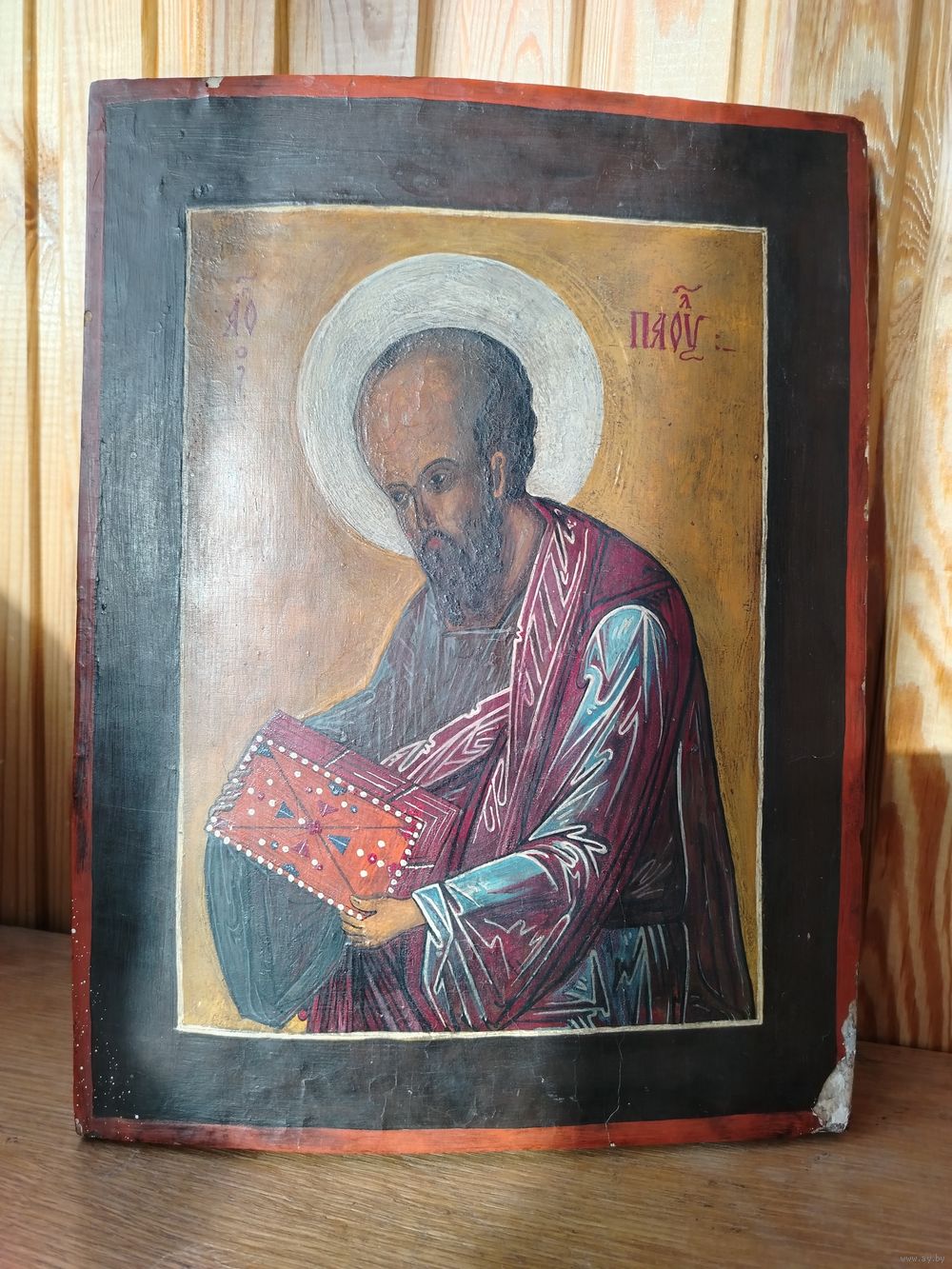 Икона "Апостол Павел", XIX век — исключительный памятник духовного искусства и православной традиции. Редкая и бережно сохранённая святыня, которая станет жемчужиной любой коллекции или домашнего иконостаса.