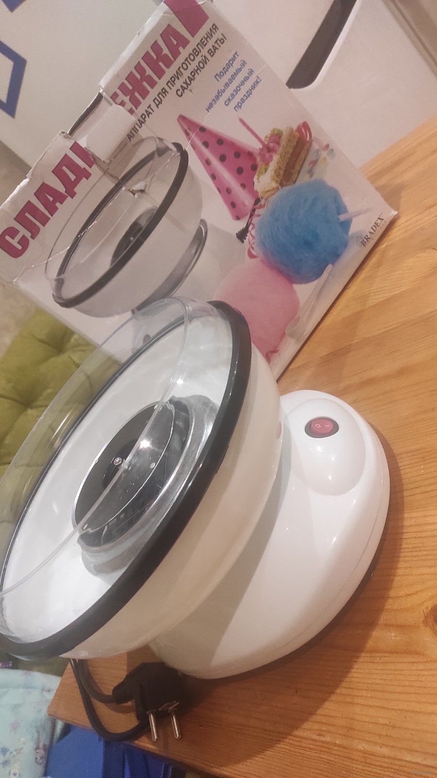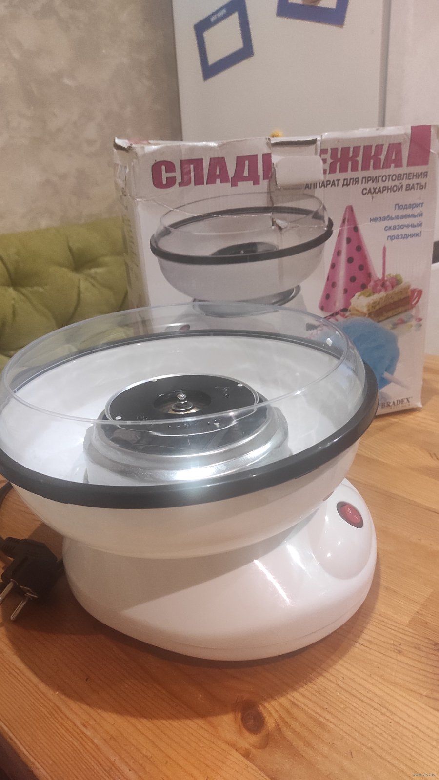 Аппарат для изготовления сахарной ваты. Bradox. Получается отличная сладкая вата. Ложки в комплекте нет. Хорошее состояние. У нас две, продаем излишек. Пользовались на дне рождении.