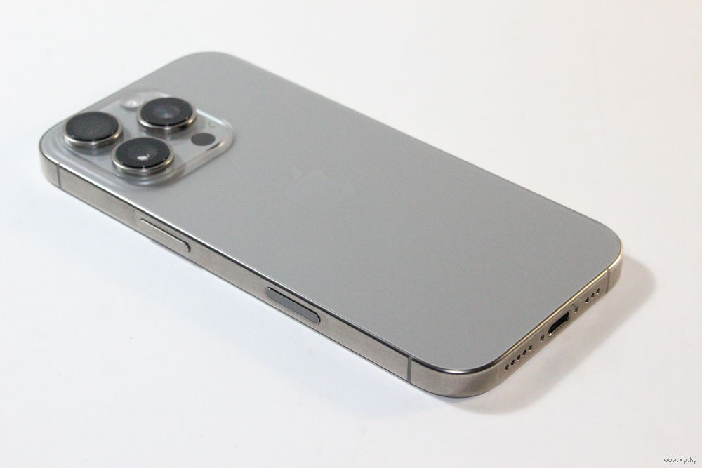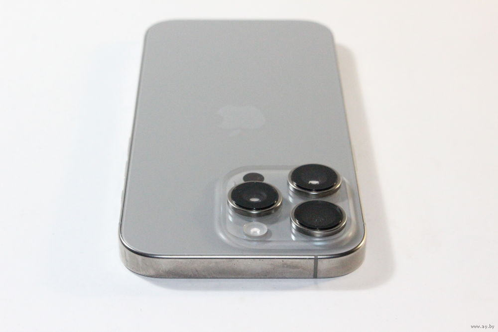 iOS, экран 6.3" OLED (1206x2622) 120 Гц, Apple A18 Pro, ОЗУ 8 ГБ, память 128 ГБ, камера 48 Мп, аккумулятор 3582 мАч, моноблок, влагозащита IP68 акб 100 %, 140 циклов