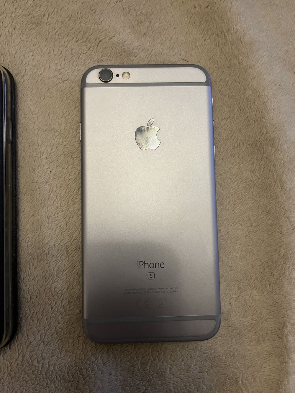 Apple IPhone 6s .32 Гб. Рабочий. Защитное стекло, чехол, блок зарядки, шнур работает, но перемотан.