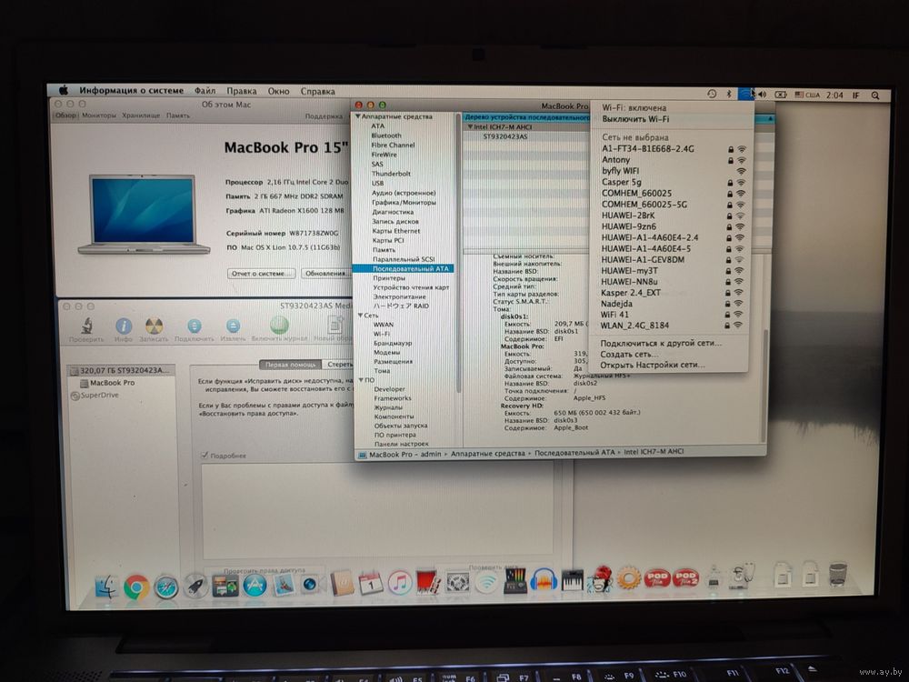 Идентификаторы: Core 2 Duo/конец 2006 г. - MA609LL - MacBookPro2,2 - A1211 - 2120