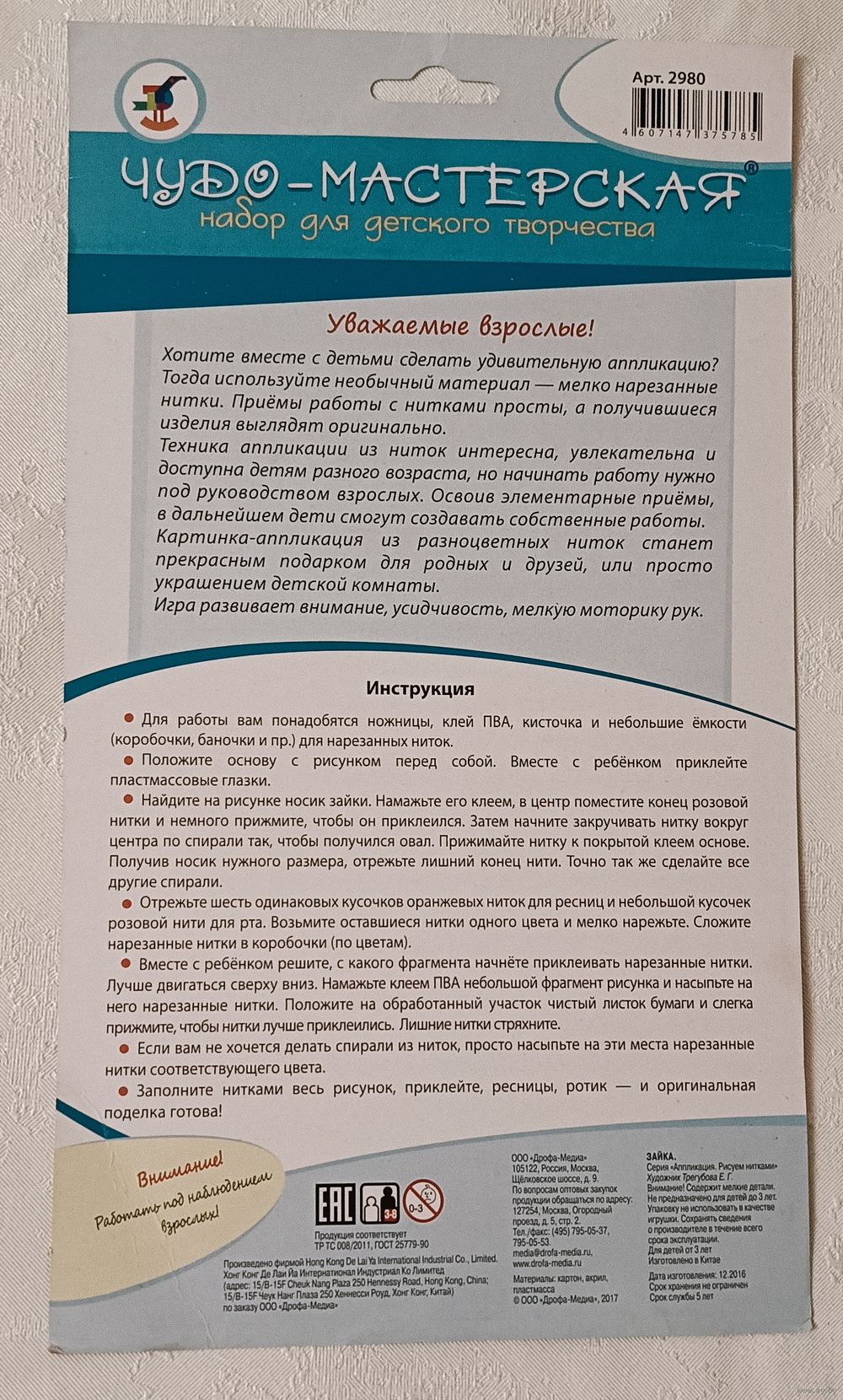 Техника аппликации из ниток интересна, увлекательна и доступна детям разного возраста, но начинать работу нужно под руководством взрослых. Освоив элементарные приёмы, в дальнейшем дети смогут создавать собственные работы.