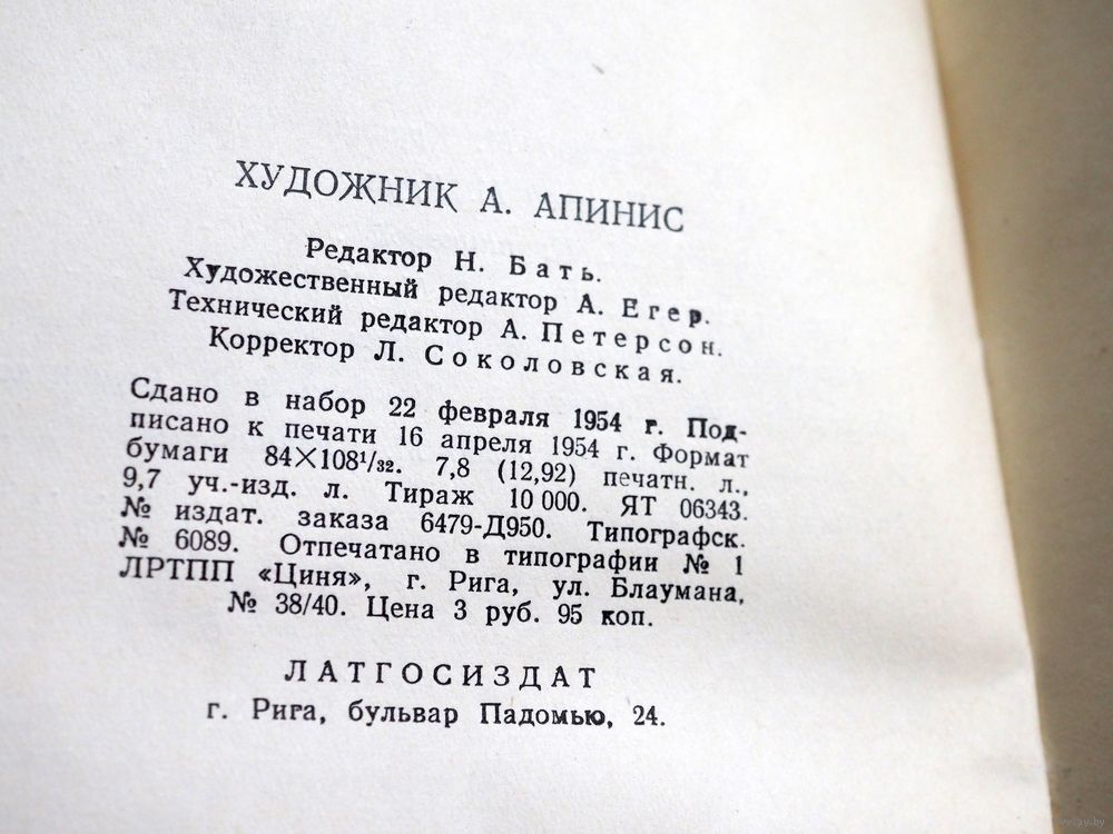 Апсишу Екаб. Избранное. Рига. 1954г. т.10000.