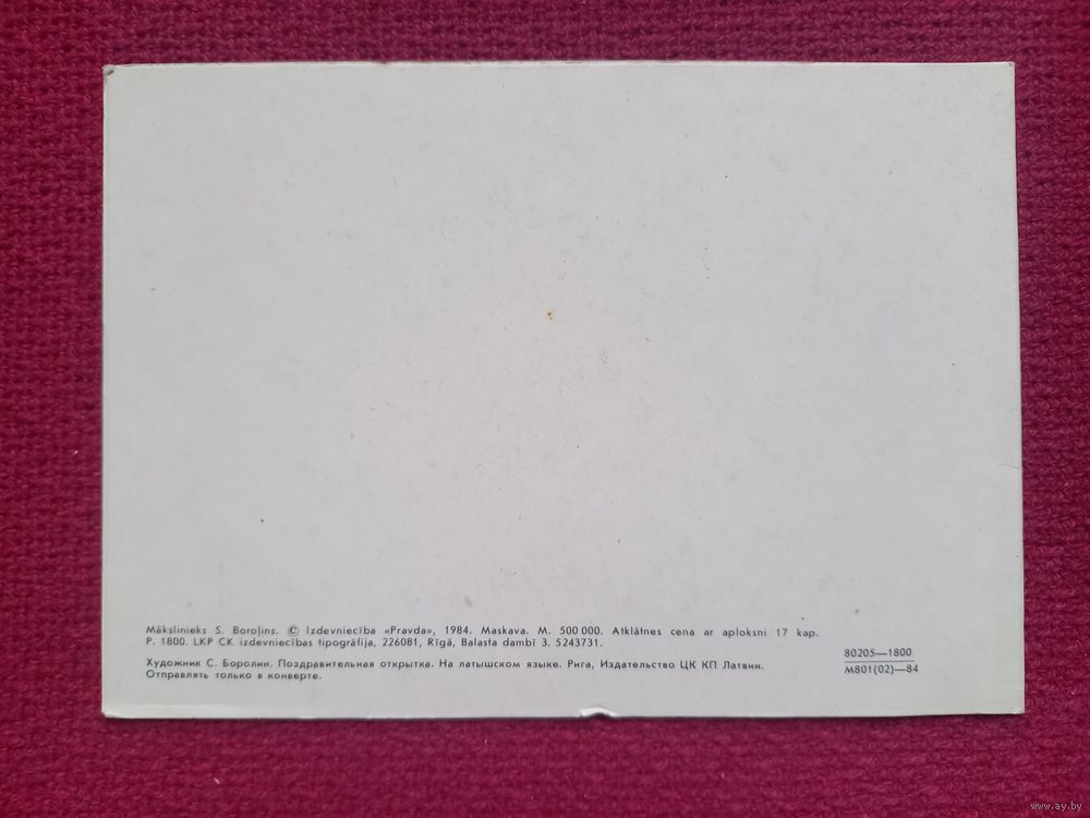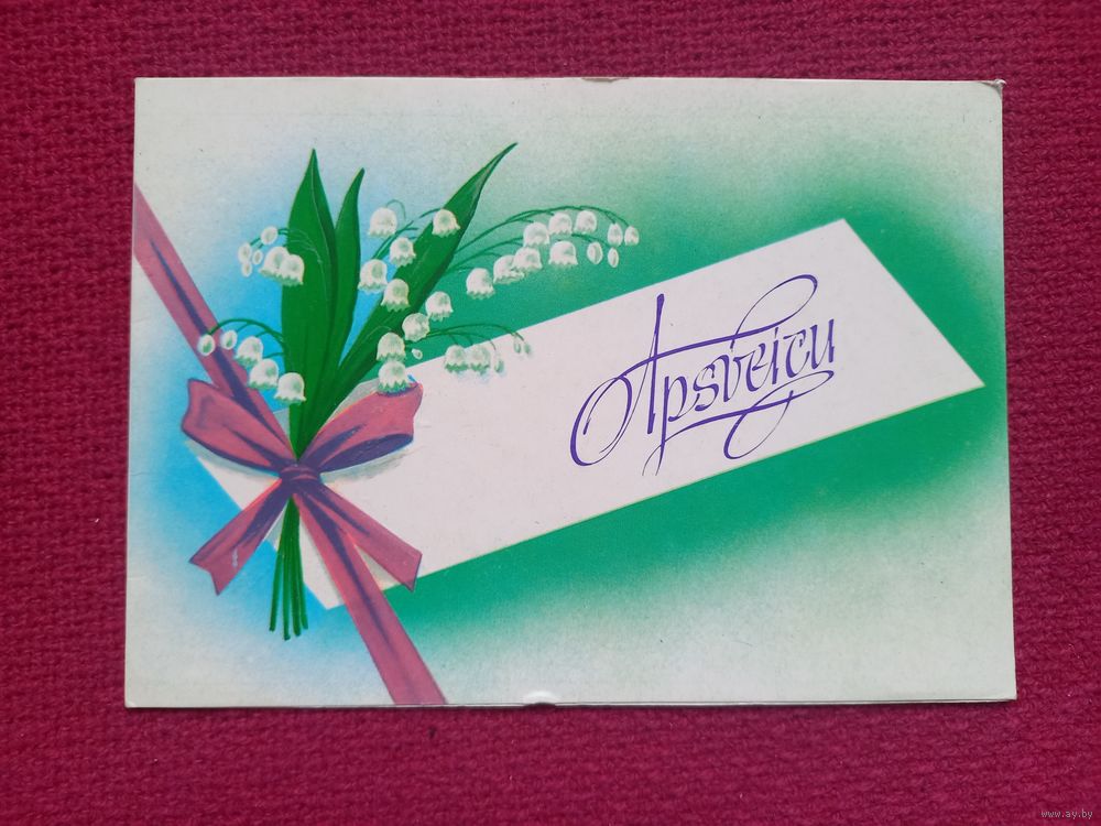 Apsveicu! Поздравляю! Латышская открытка. Боролин 1984 г. Двойная. Чистая.