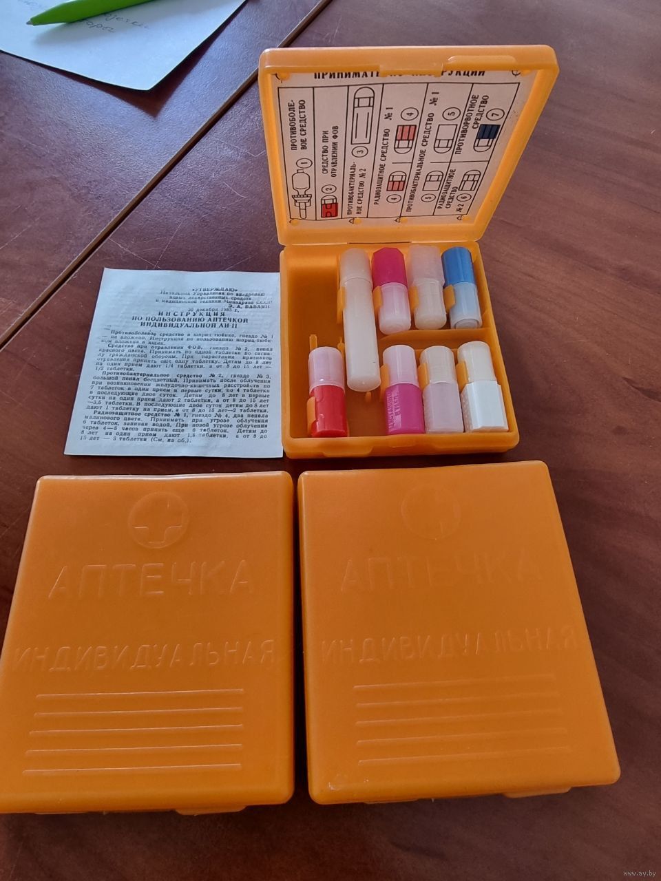 Аптечки с фиксатором, инструкцией, капсулами и картой раскладки.