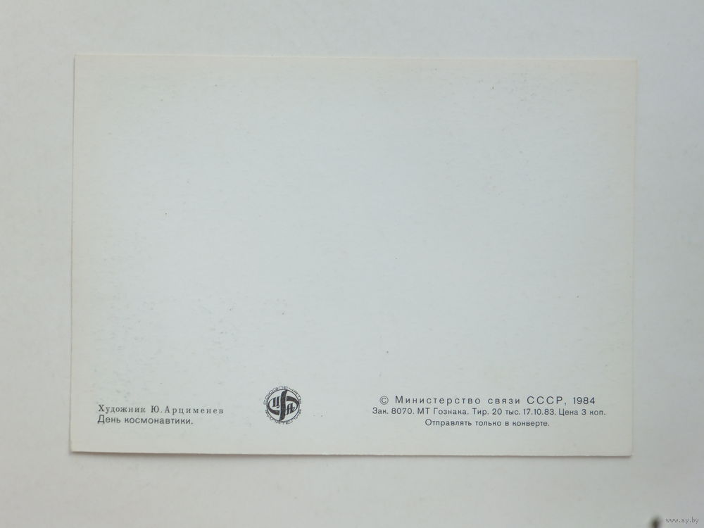 Арцименев день космонавтики 1984 10х15 см картмаксимум