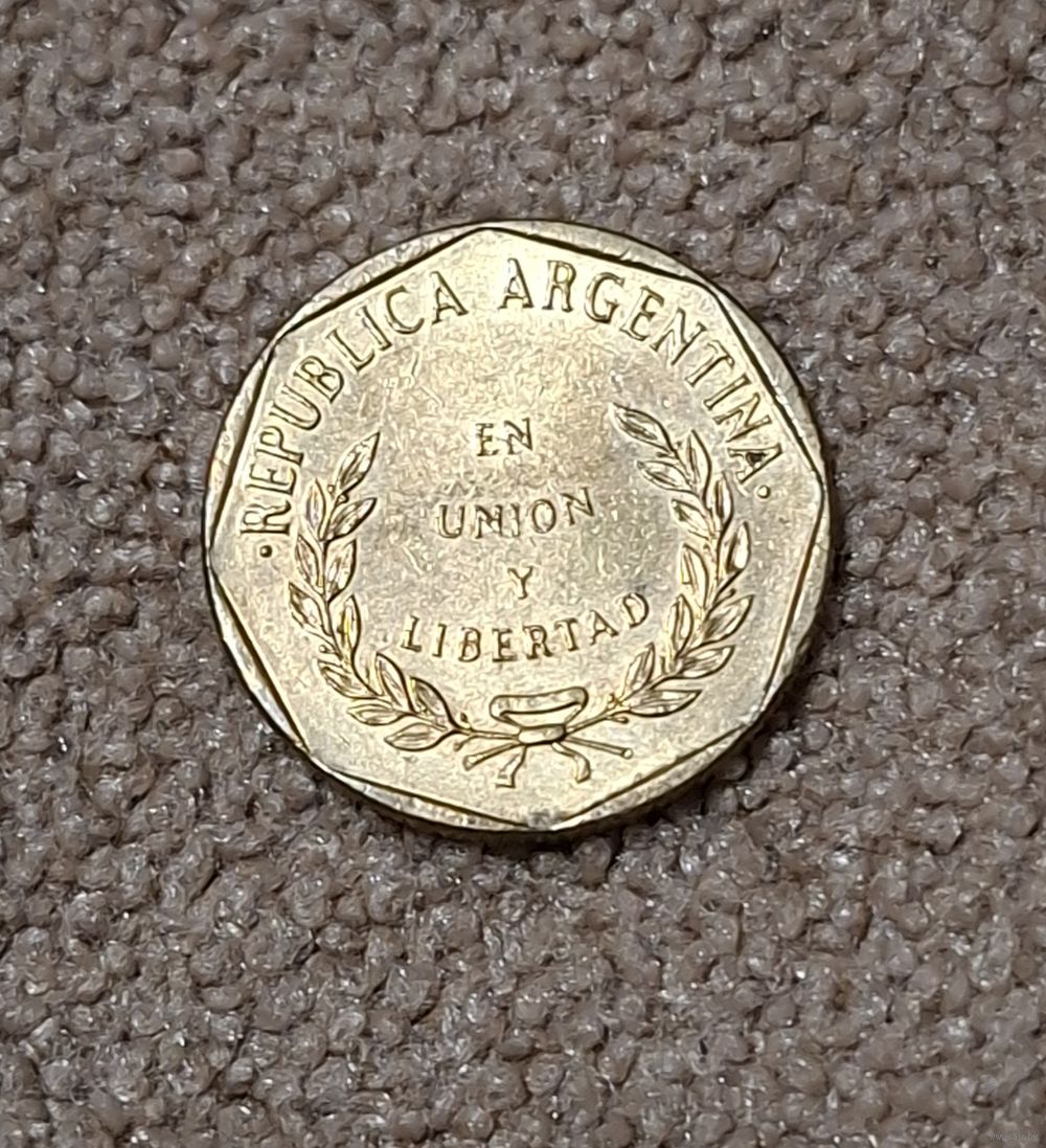 Аргентина 1 сентаво, 1992 Круг, рубчатый гурт aUNC