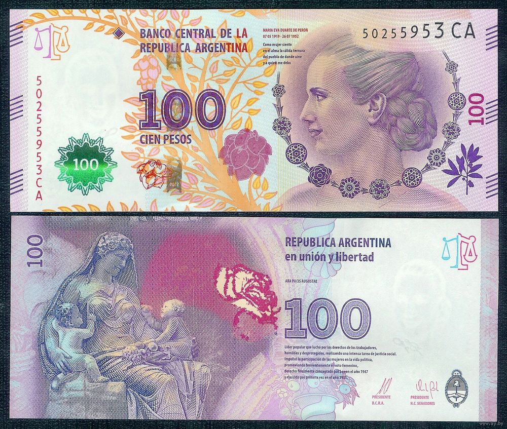 Аргентина 100 песо 2016 (2017) год, UNC