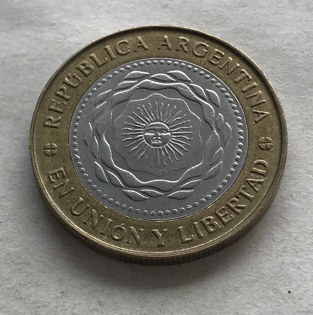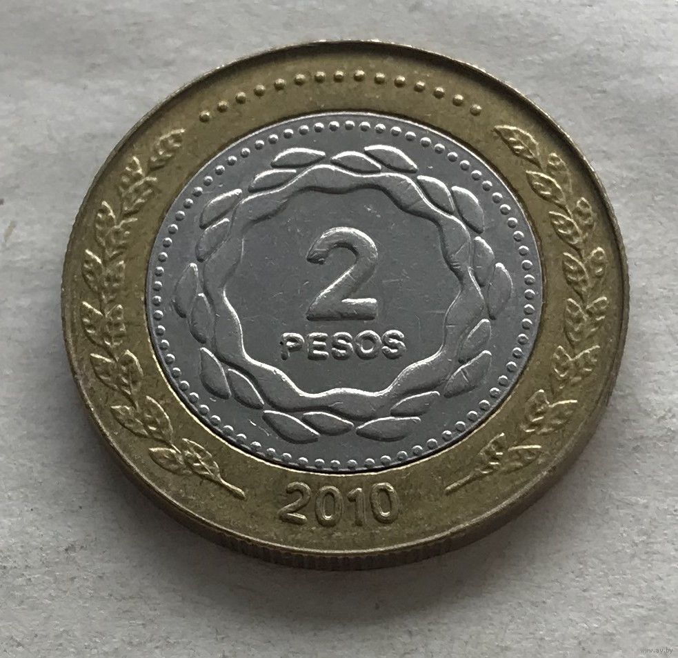 Аргентина 2 песо 2010 биметалл - первый год чекана