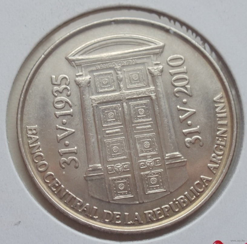 Аргентина 2 песо 2010 год 75 лет Центральному банку Аргентины состояние холдер