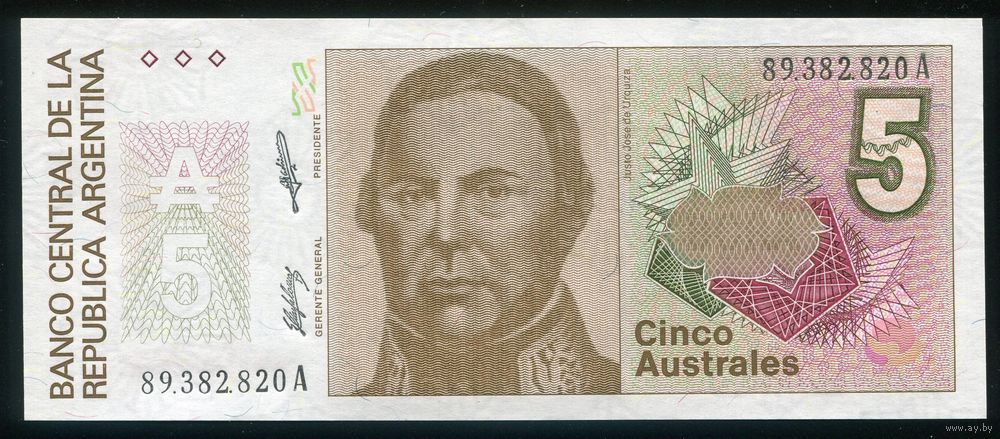 Аргентина 5 аустралей 1985-89 гг. P324b. Серия A. UNC