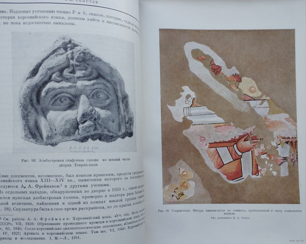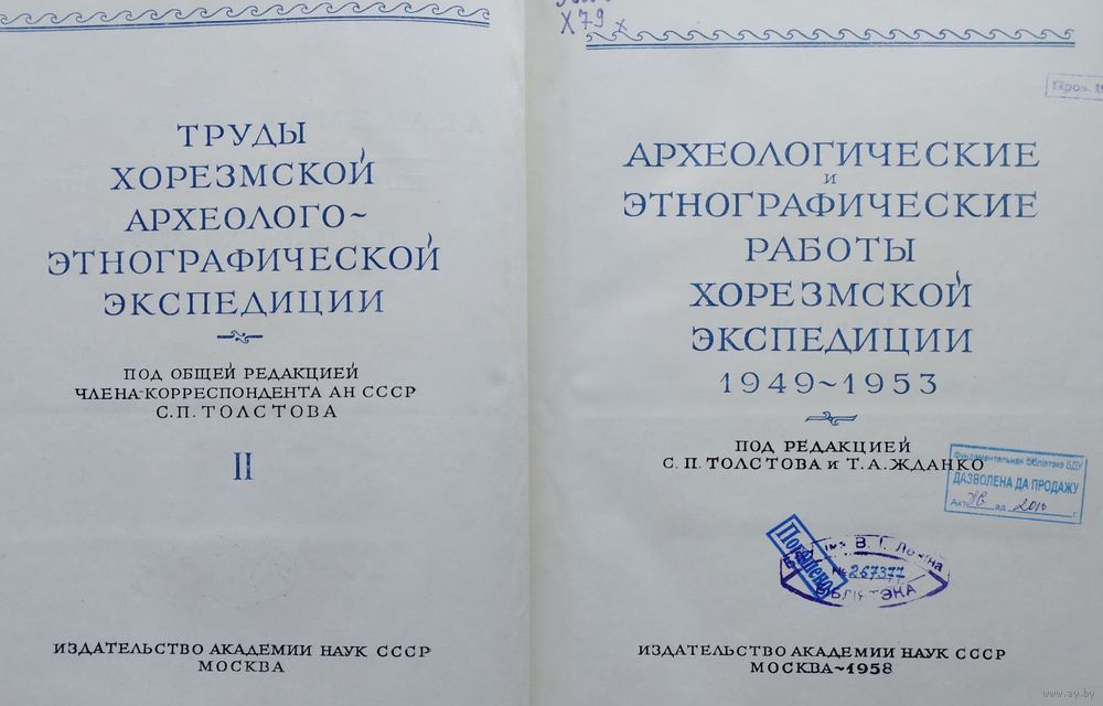 Цена за 2 тома. Большой энциклопедический формат. Ляссе. Тираж 2000 экз. 818+658 стр. Хорезмская археолого-этнографическая экспедиция (1937–1991), основанная С.П. Толстовым, — масштабное исследование цивилизации Хорезма в Средней Азии. Основные работы включали раскопки античных городищ (Топрак-кала, Кой-Крылган-кала), изучение оросительных систем, курганов (Тагискен, Уйгарак) и этнографические исследования каракалпаков, туркмен, казахов, значительно расширив знания о древней культуре. Есть штампы.