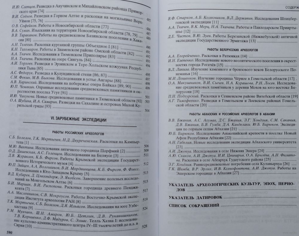 Цена за 1 том. Большой формат. Тираж 600 экз. 618 стр. Отв. ред. Н. В Лопатин. Выпуск содержит новейшую информацию о полевых археологических исследованиях в России. Материалы сгруппированы в пять территориальных разделов, каждый сопровождается картой памятников. Шестой раздел посвящен работам археологов за рубежом. В статьях приводятся краткие сведения о результатах раскопок памятников археологии, наиболее интересных объектах и находках.