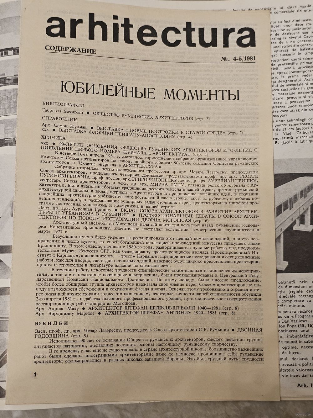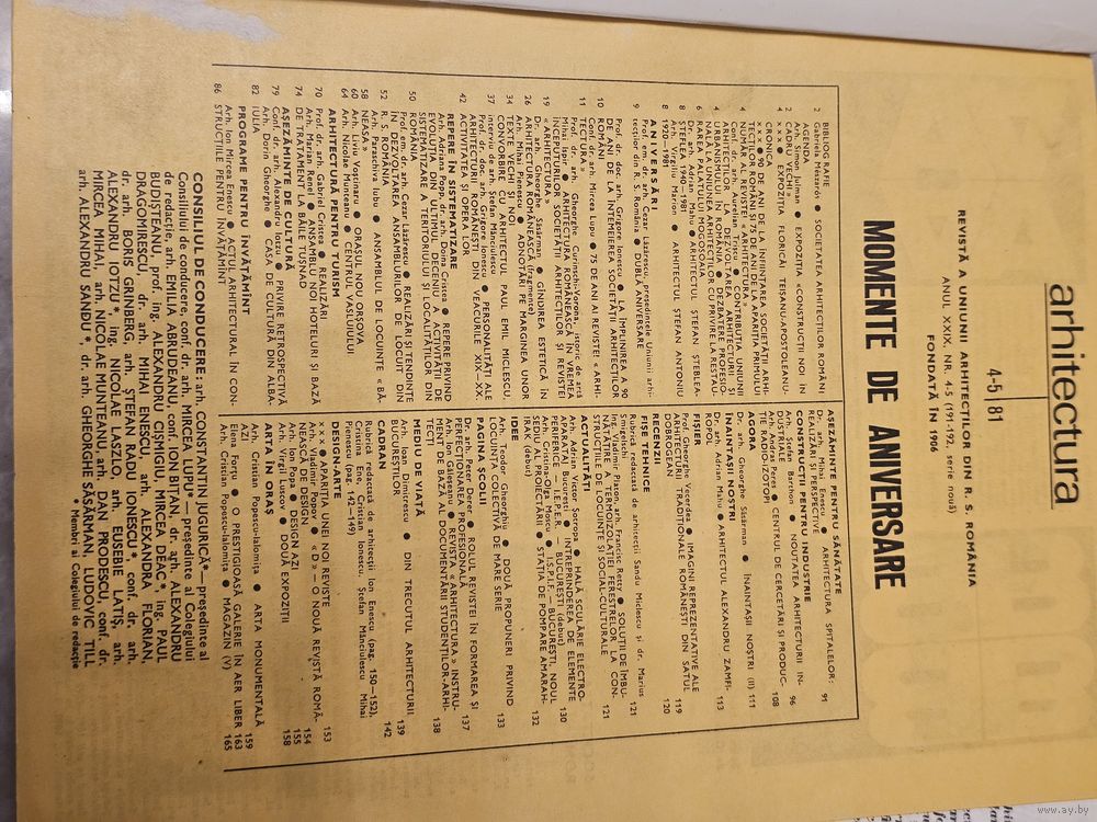 Номер 4-5 за 1981 год относится к периоду правления Николае Чаушеску. В это время румынская архитектура находилась на стыке функционального модернизма и нарастающего идеологического монументализма (подготовка к строительству Гражданского центра в Бухаресте).