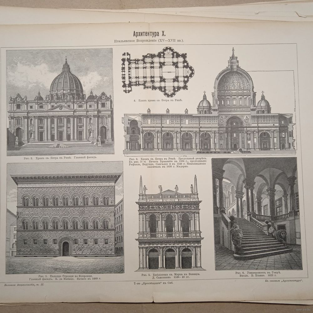 АРХИТЕКТУРА 10. Энциклопедическая гравюра конец 19в. 31х24см.