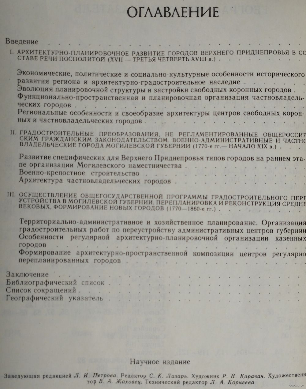 Большой энциклопедический формат. Тираж 1100 экз. 144 стр. Работа посвящена истории архитектурного развития городов восточной Белоруссии в позднесредневековый и классицистический периоды. Вопросы формирования и развития, своеобразие местной архитектурной традиции рассматриваются в контексте градостроительной культуры Речи Посполитой и Российской империи. Адресована архитекторам, историкам, искусствоведам, всем, кто изучает историю и памятники культуры Белоруссии.