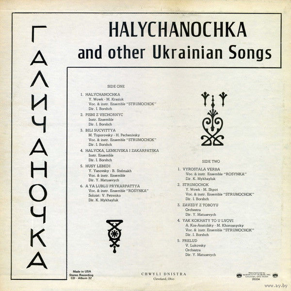 Various – Галичаночка, Украинские песни = Halychanochka And Other Ukrainian Songs