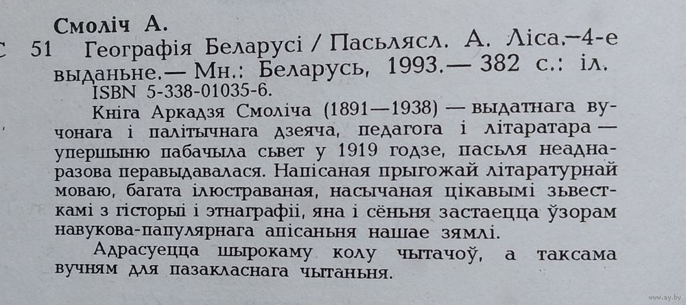 Аркадзь Смоліч. Геаграфія Беларусі. 4-е выд. Міннск : Беларусь, 1993 г. 374 с. Цверды пераплет.